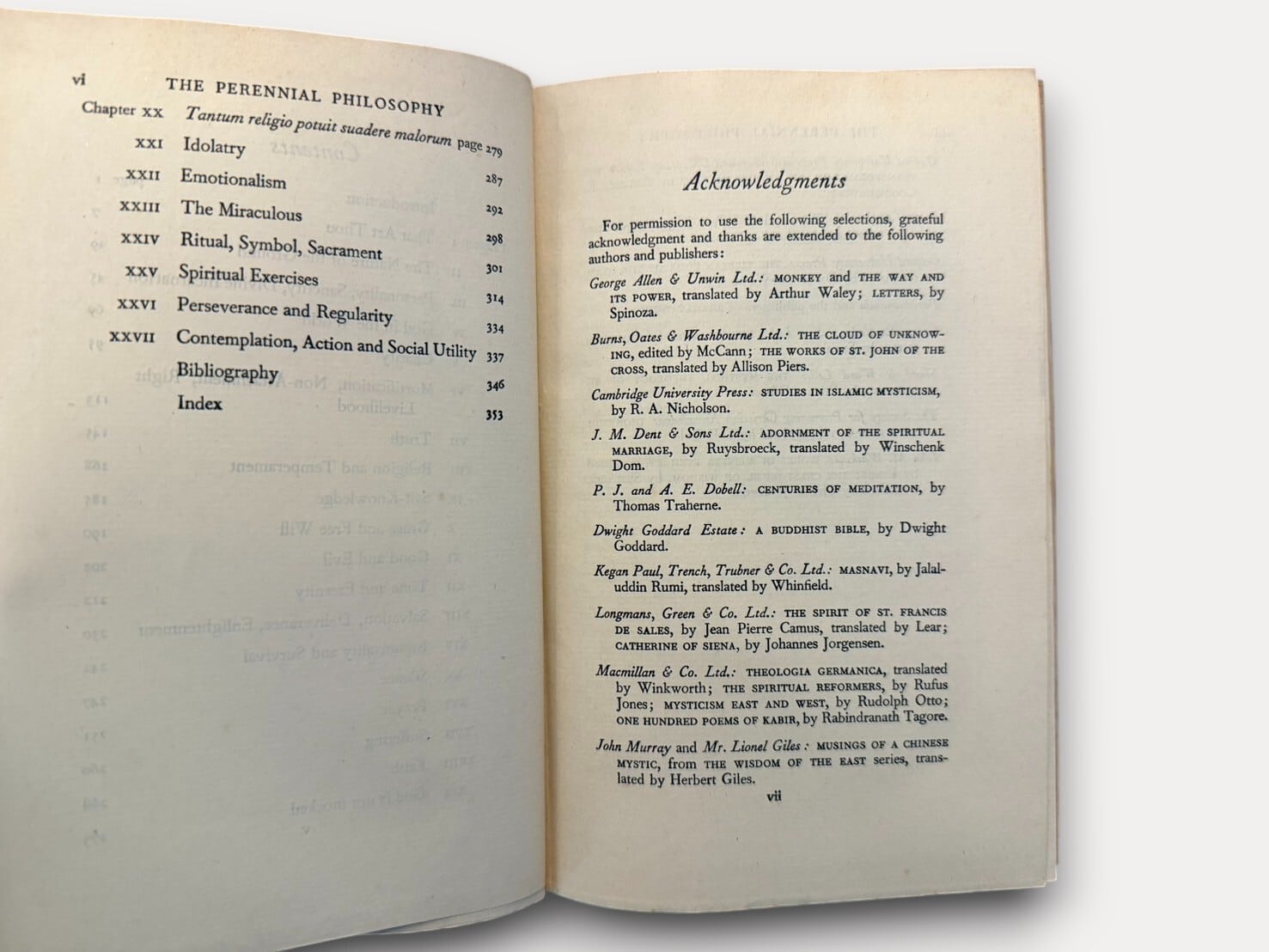 オルダス・ハクスリーによるエッセイ集『永遠の哲学 - 究極のリアリティ』 。初版は1945年に刊行された。本書は1950年に刊行された第4刷。
