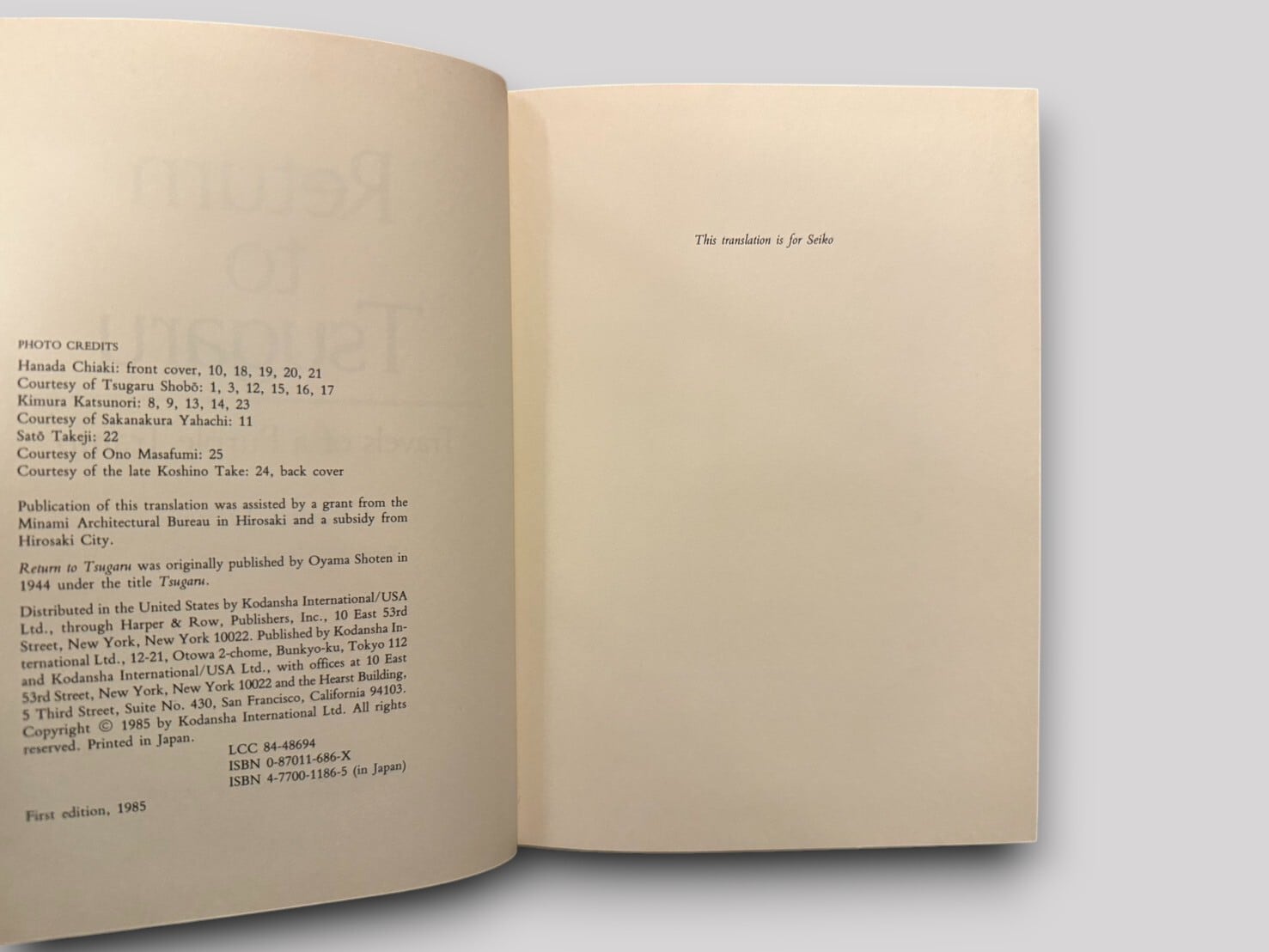 【SJ497】【FIRST EDITION】Return to Tsugaru(1985) /Osamu Dazai
