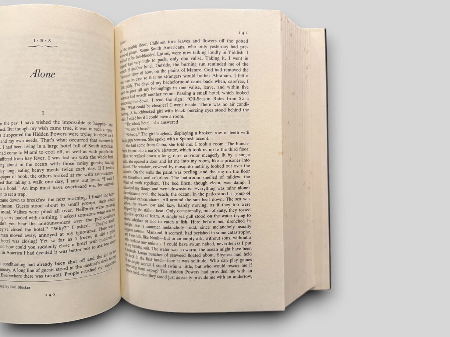 アイザック・バシェヴィス・シンガーが自身で選集した短編集。『Gimpel the Fool』『The Spinoza of Market Street』『A Crown of Feathers 』『Old Love』など全47作品収録。1982年刊行、初版・初刷。シンガーの署名入り。