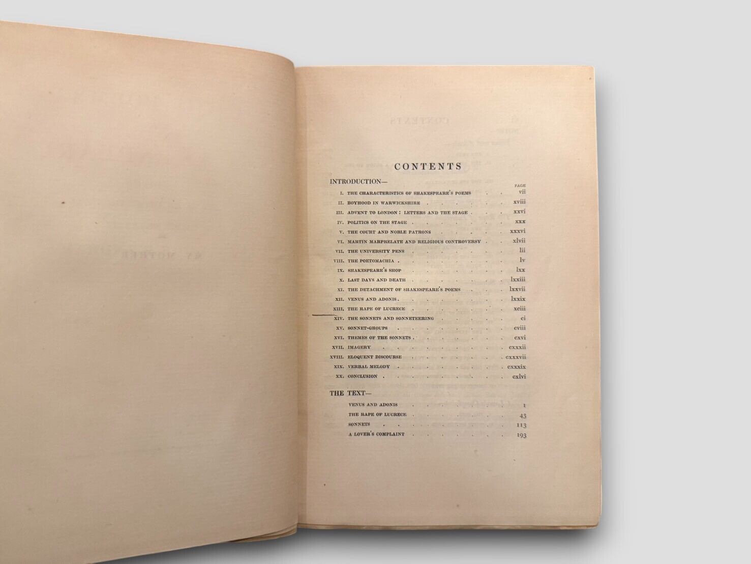 ウィリアム・シェイクスピアの詩集。イギリスの政治家で文学者のジョージ・ウィンダム(1863-1913)による編集・序文・解説付き。1898年に刊行された初版。