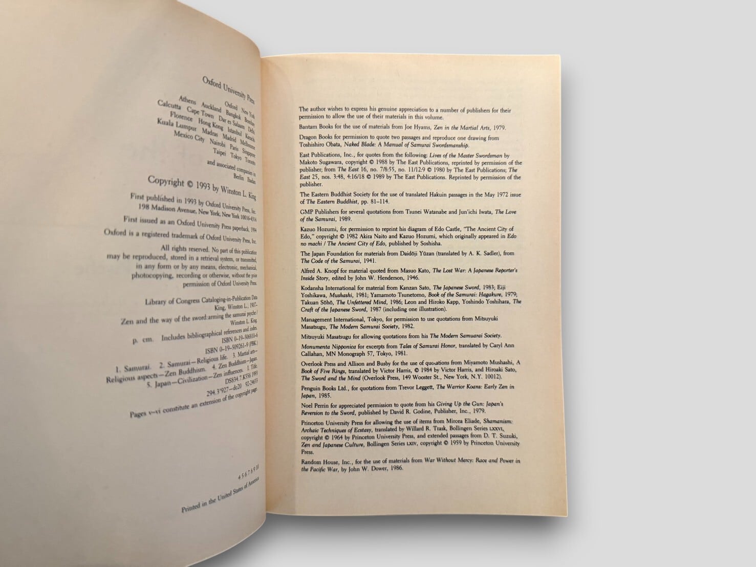 【SJ528】Zen and the Way of the Sword: Arming the Samurai Psyche (1994) / Winston L. King