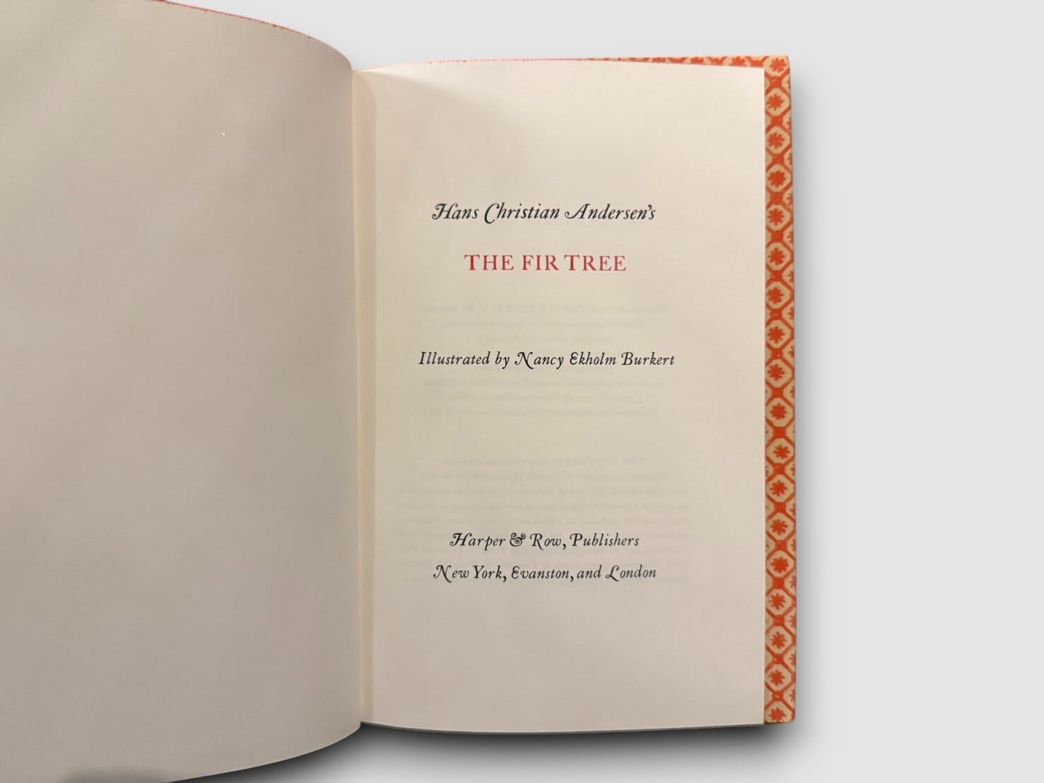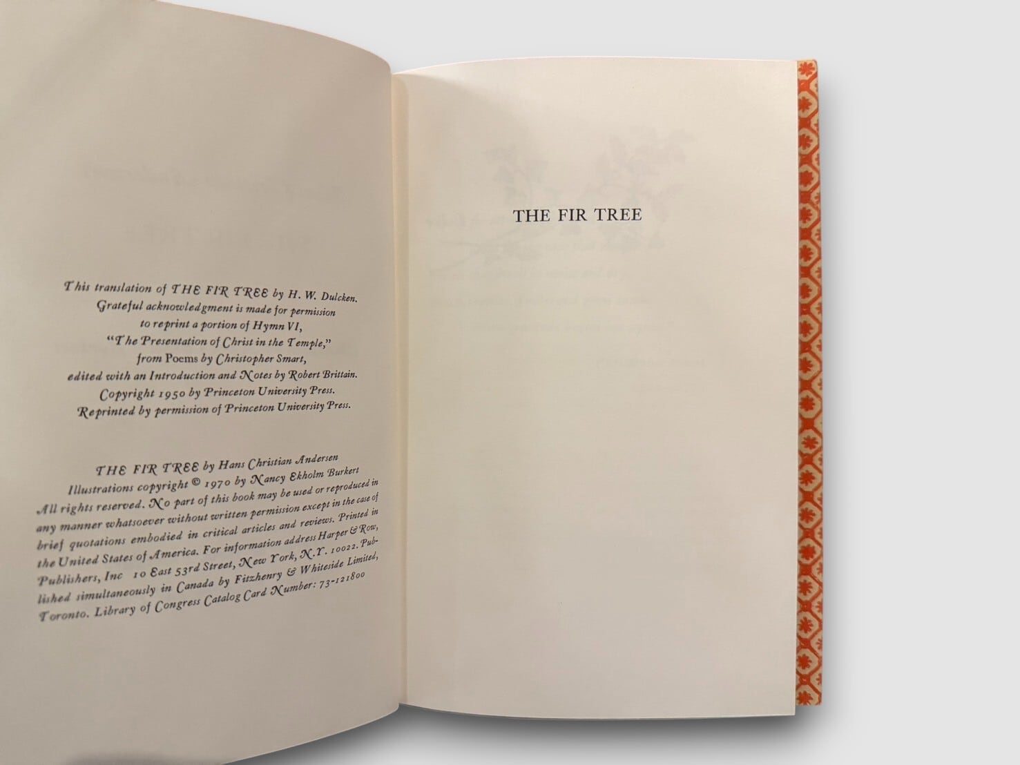 ハンス・クリスチャン・アンデルセンによる文学童話『もみの木』。アメリカの画家兼イラストレーター、ナンシー・エクホルム・バーカートによる挿絵入り。1970年刊行。