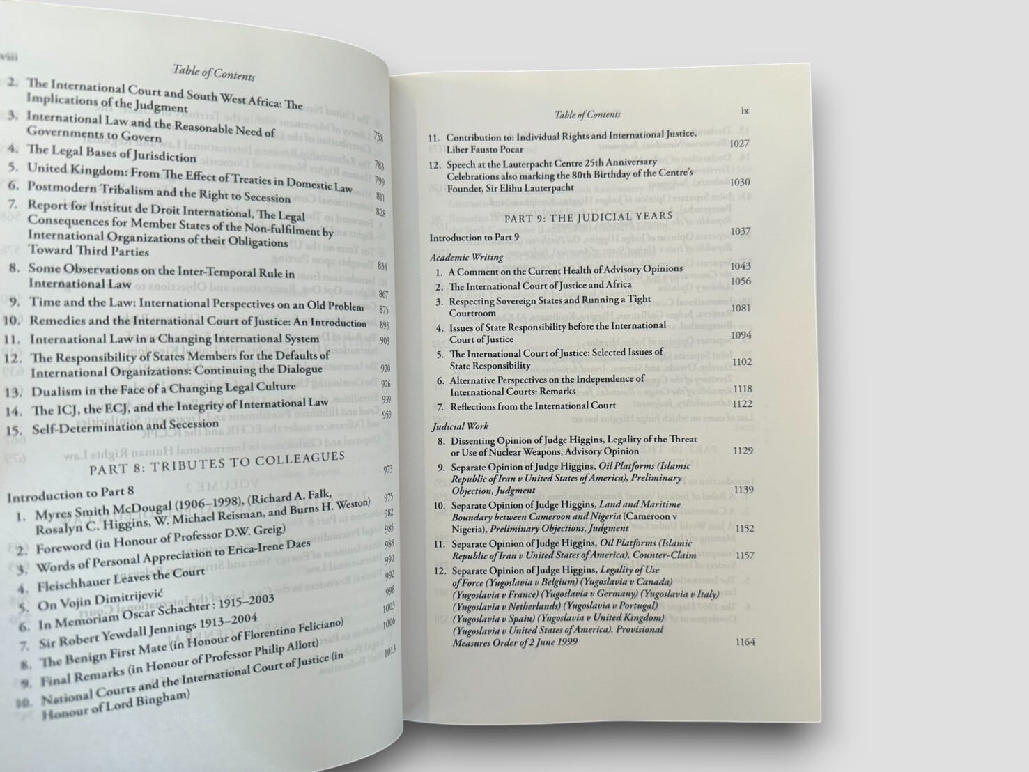 英国の指導的国際法律家であるロザリン・ヒギンズ女史による国際法論文集。全2巻。2009年刊行初版。