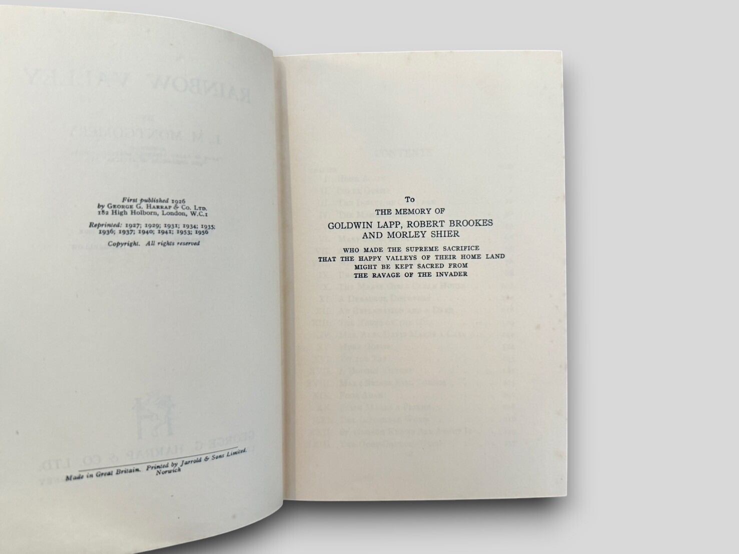 L・M・モンゴメリによるMcClelland社から1919年に発表された長編小説『虹の谷のアン』。『赤毛のアン』シリーズ第7作目となる作品。本書は1956年に刊行されたHarrap社版。