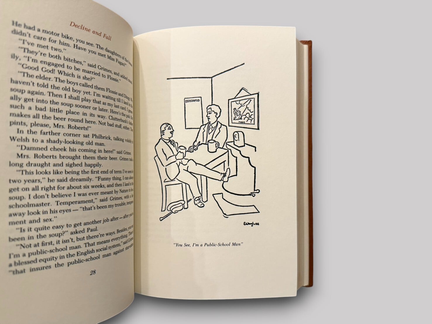 『Decline and Fall』はイーヴリン・ウォーの処女作にして、彼の風刺スタイルを確立した記念碑的な小説。イギリス社会をユーモラスかつシニカルに描いたブラックコメディで、ウォー本人が挿絵も描くなど、文と絵の両面で“ユーモア文学”を体現した名作。限定版特典として編者による解説書付き。