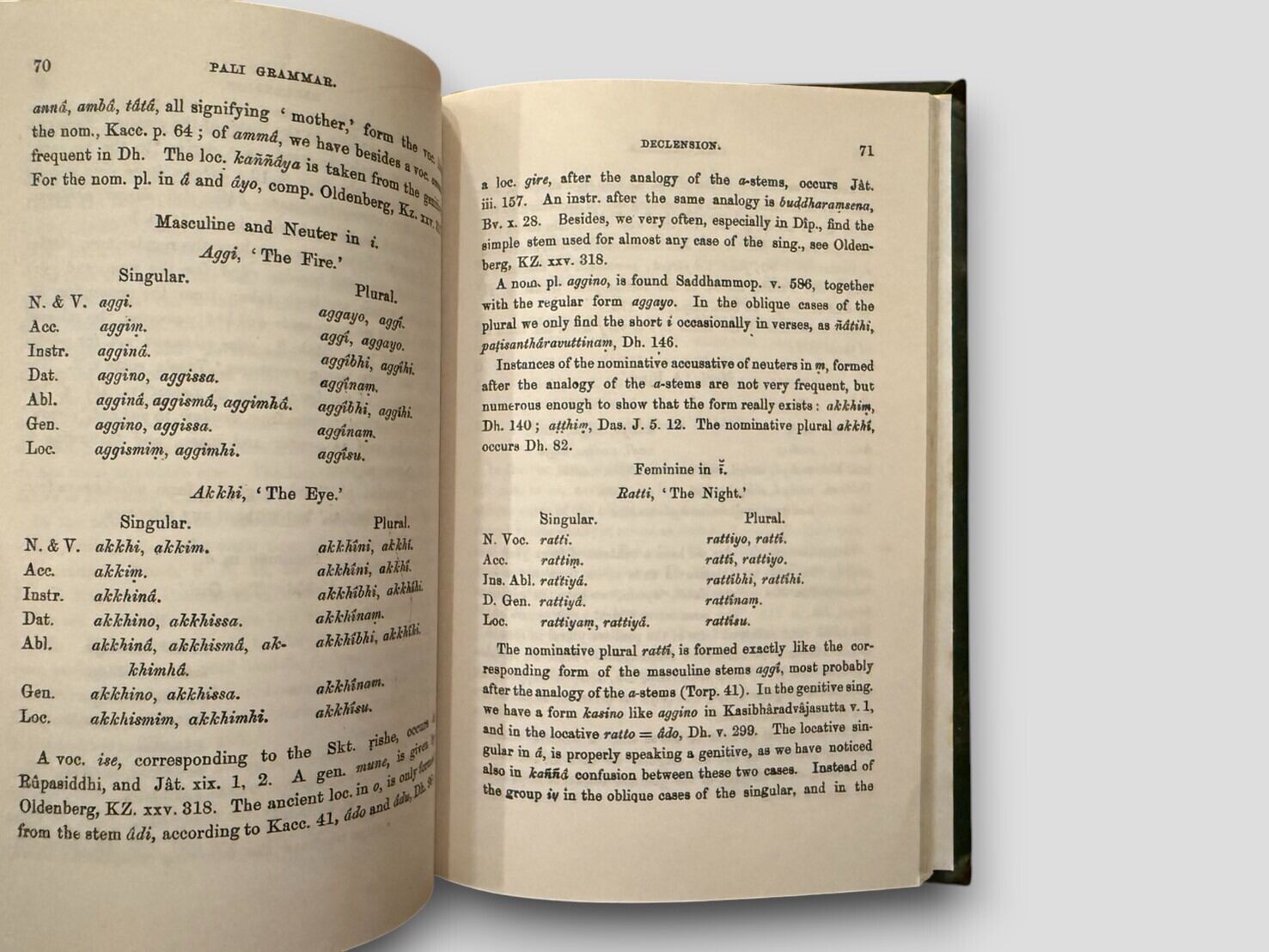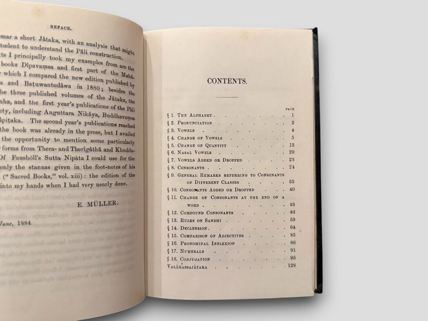 パーリ語の文法を学ぶ初学者のために、簡明かつ体系的にまとめられた文法書。明快な構成で項目ごとに短くまとめられており、古典パーリ語に入門するうえで優れた手引き書となっている。1884年に刊行された初版のリプリント。