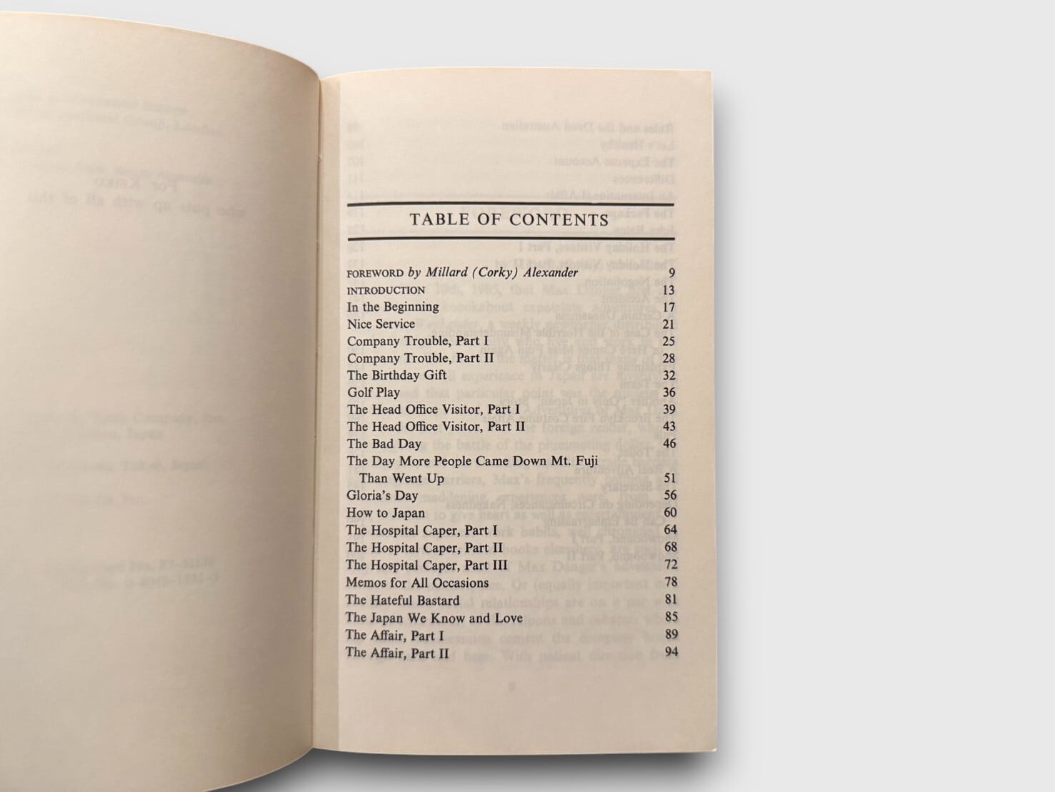 米国人ビジネスマン“マックス・デンジャー”が東京で繰り広げる日常を、ユーモアたっぷりに綴ったエッセイ集。著者ロバート・J・コリンズ自身の在日経験をベースにした語りは、80年代の日本社会における文化の違い、奇妙で魅力的な習慣、人間模様を、愛ある目線で描いている。海外読者にとっては“異文化コミカルガイド”として、そして日本人にとっては“外から見たニッポンの姿”を知る一冊として、1980年代から現在に至るまでロングセラーとなっている作品である。初版は1984年刊行、本書は1988年に刊行された第4刷版。