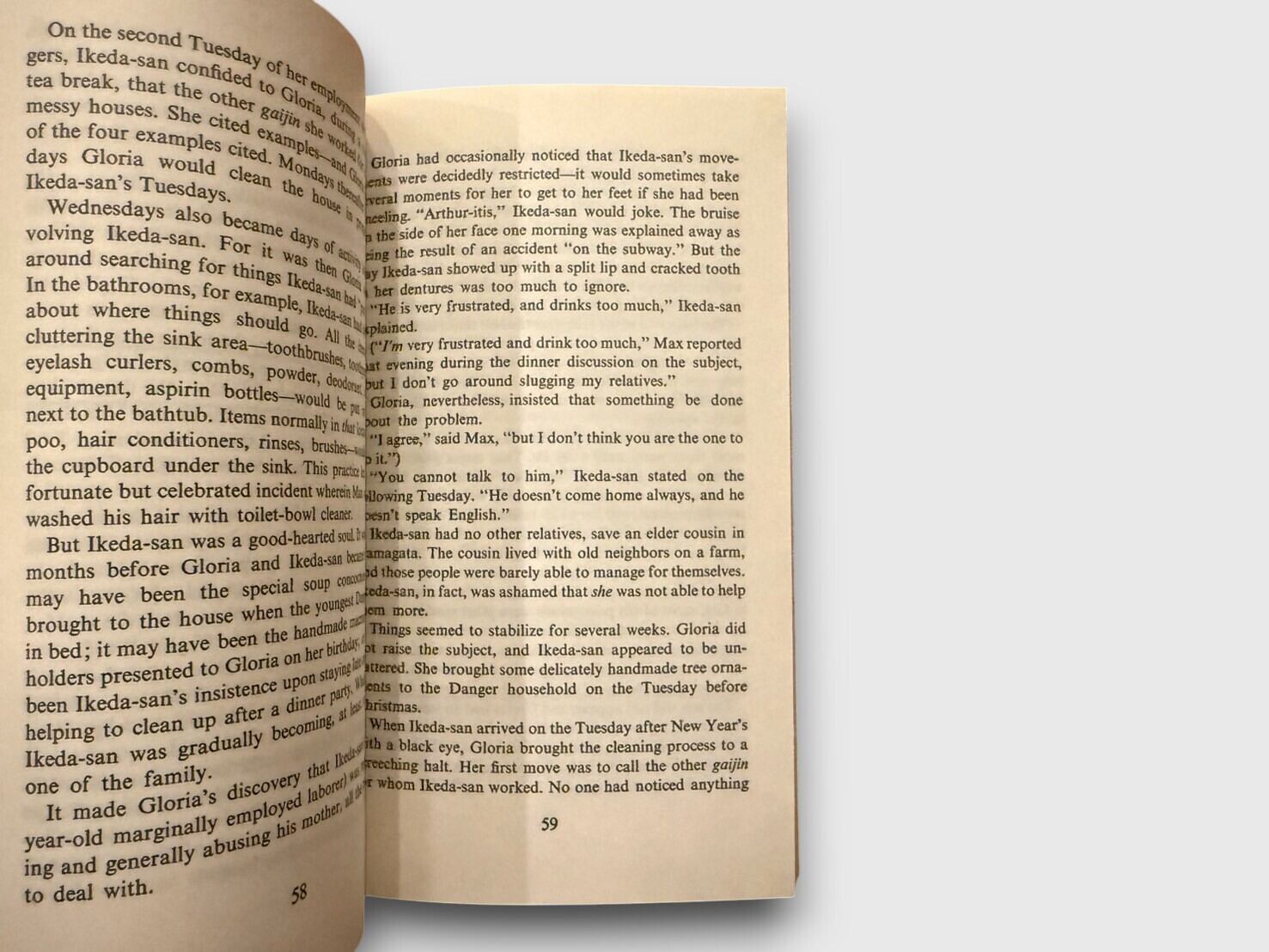 前作『Max Danger』の人気を受けて続編として刊行された本書『More Max Danger: The Continuing Adventures of an Expat in Tokyo』は、主人公マックス・デンジャーが再び東京で繰り広げる“奇想天外な日常”を描いた、痛快なエッセイ集。外国人ビジネスマンとして日本社会にどっぷり浸かるマックスが、言葉の壁や習慣の違いに戸惑いながらも、飄々とした視点で異文化の滑稽さと愛おしさを描いていく。前作よりさらにスケールアップした内容で、日本人にとっては“見慣れたはずの風景”が、まるで異国のパロディのように映し出される。一歩引いたユーモアと、ときにほろりとさせる観察眼が絶妙で、当時の東京に生きた“もうひとつの記録”としても興味深い。1989年に刊行されたTuttle社版初版。