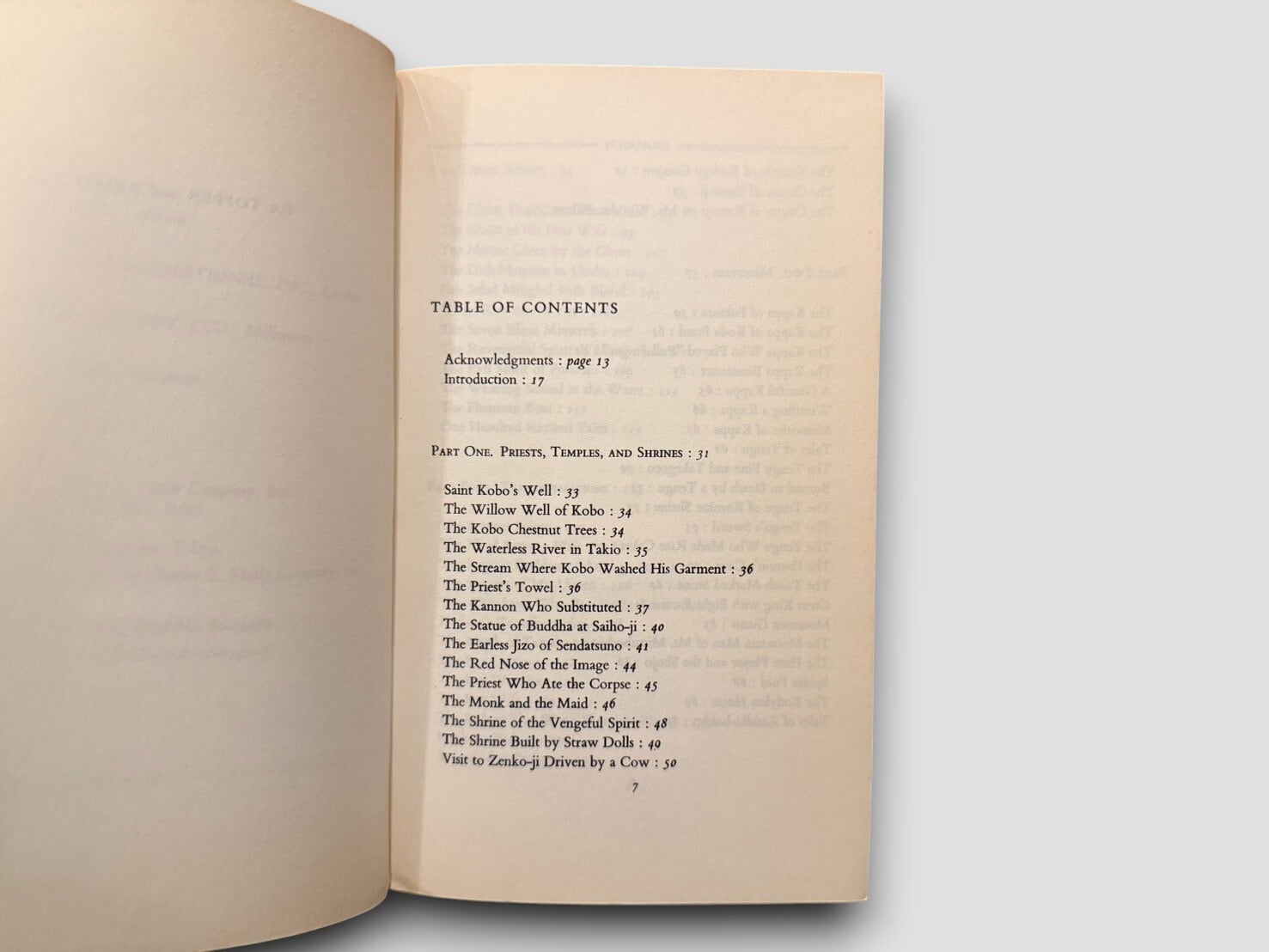 アメリカの民俗学者リチャード・M・ドーソンが、日本各地に伝わる伝説と妖怪譚を独自の視点で掘り起こし、僧侶・妖怪・霊魂・狐羊などの物語を収録した珠玉の1冊。米国フルブライト招待で来日した著者が日本各地を訪ね、現地の語り部から直接聞き取った口承資料をもとに編集された貴重な成果でもあり、今や民俗学と日本文化研究の古典として世界で読み続けられている。タトル版初版は1962年。本書は1973年に刊行された第8刷り。