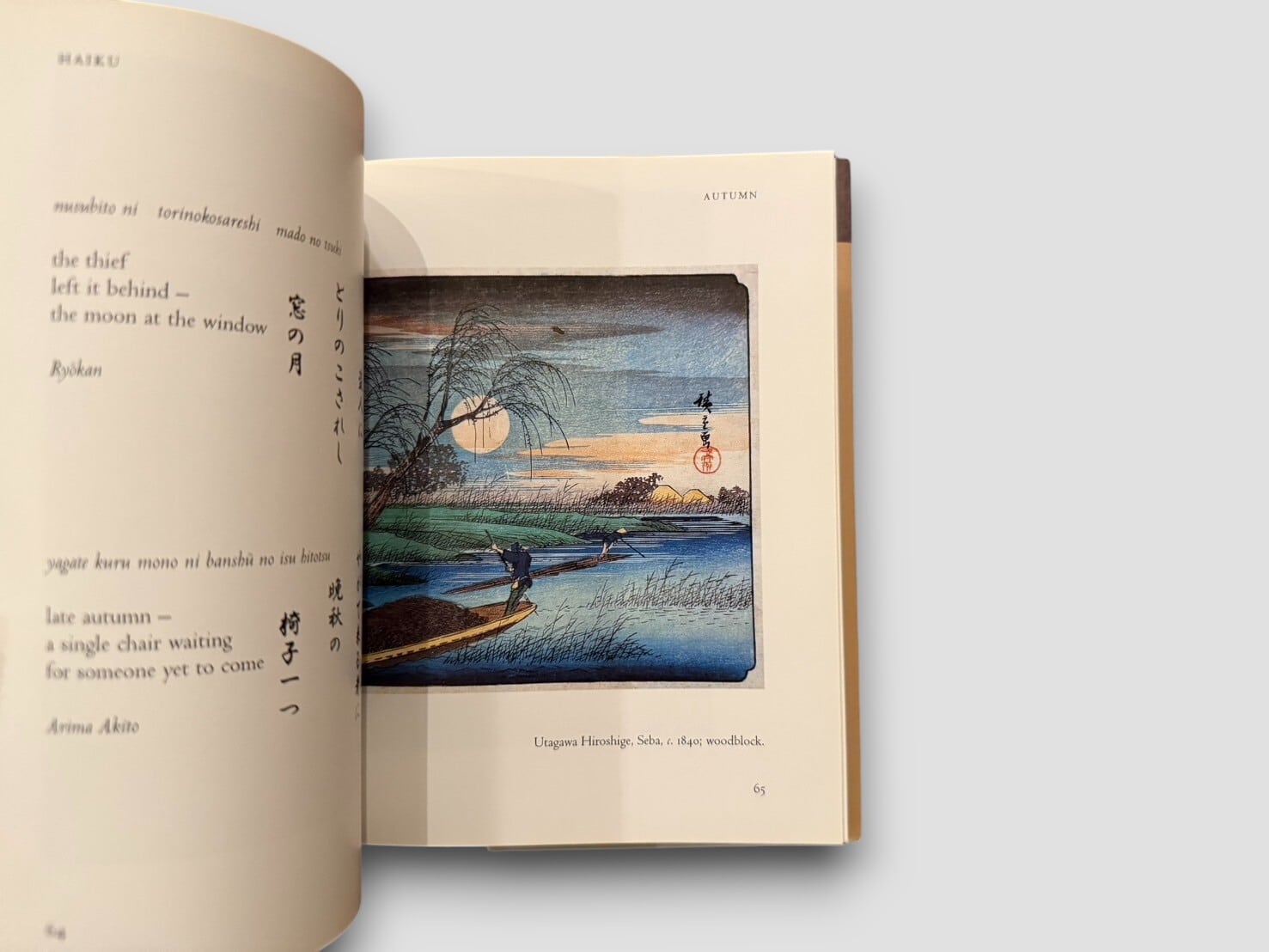 松尾芭蕉、小林一茶、与謝蕪村らの名作から現代の作品までを英国の俳人デヴィッド・コブが精選した俳句集。各句には英訳が施され、英語圏の読者にも日本の四季と詩心が静かに届くよう構成されている。美しい図版と装丁にも注目。2003年に刊行されたリプリント。