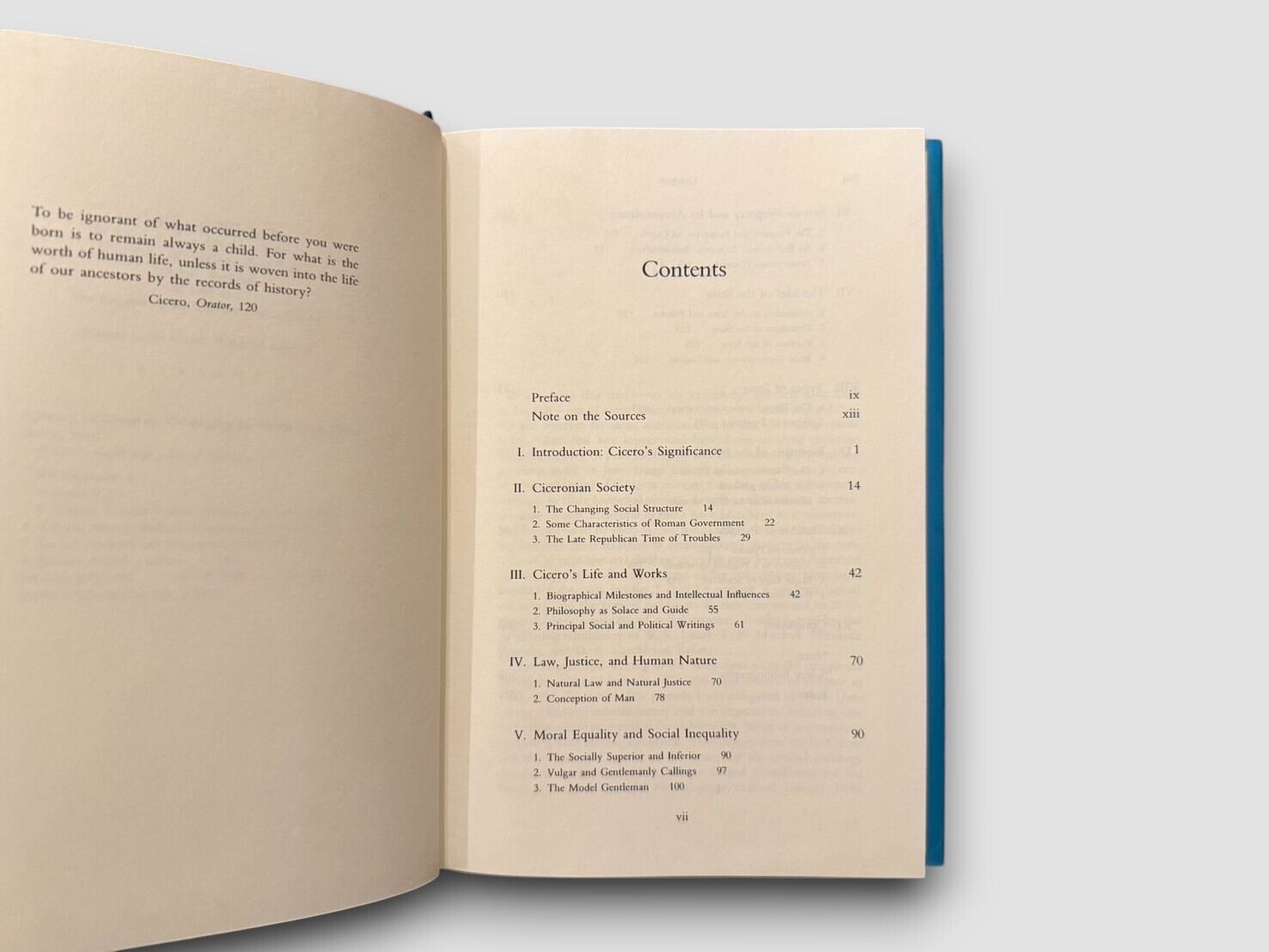 古代ローマの雄弁家にして哲人キケロの政治・社会思想を、現代の視座から再検討した一冊。著者ニール・ウッドは、本書においてキケロの著作を丹念に読み解きながら、共和政ローマにおける法、正義、国家、政治の在り方を緻密に描き出している。キケロの思想的意義、ローマ社会の構造、混合政体の概念、政治の技法、そして国家と個人の関係性に至るまで包括的に論じられている。1988年刊行初版。