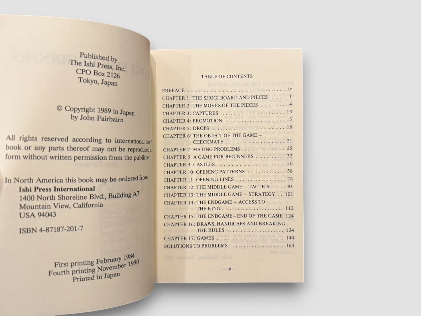 日本の伝統的な将棋(Japanese Chess)の世界を初学者向けに解説した、ロングセラーの英語入門書。将棋盤と駒の配置、駒の動き、取った駒の活用、基本的なルールや戦術に加え、中盤から終盤にかけての戦略・詰みパターンまで、丁寧な図解と共に分かりやすく構成されている。“SHOGI”という異文化の知的ゲームに触れたい英語圏の読者にとっての最初の一冊として、海外でも高く評価されてきた一冊。1990年刊行。