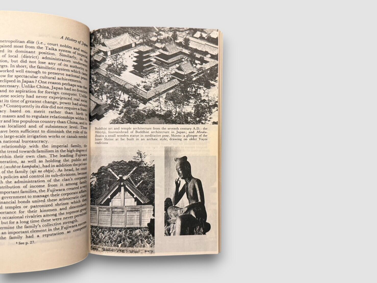古代から近代までの日本の通史を、明快かつ学術的に描き出したスタンダードな歴史書『日本の歴史』。考古学的な出発点から、飛鳥・奈良・平安・鎌倉・江戸・明治、そして戦後まで、政治・文化・宗教・社会構造など多角的な視点から日本の変遷を辿る。歴史学と文学、宗教思想までを結びつけながら丁寧に叙述されており、入門者から研究者まで広く支持されてきた定評ある一冊。1981年刊行タトル版第7刷。