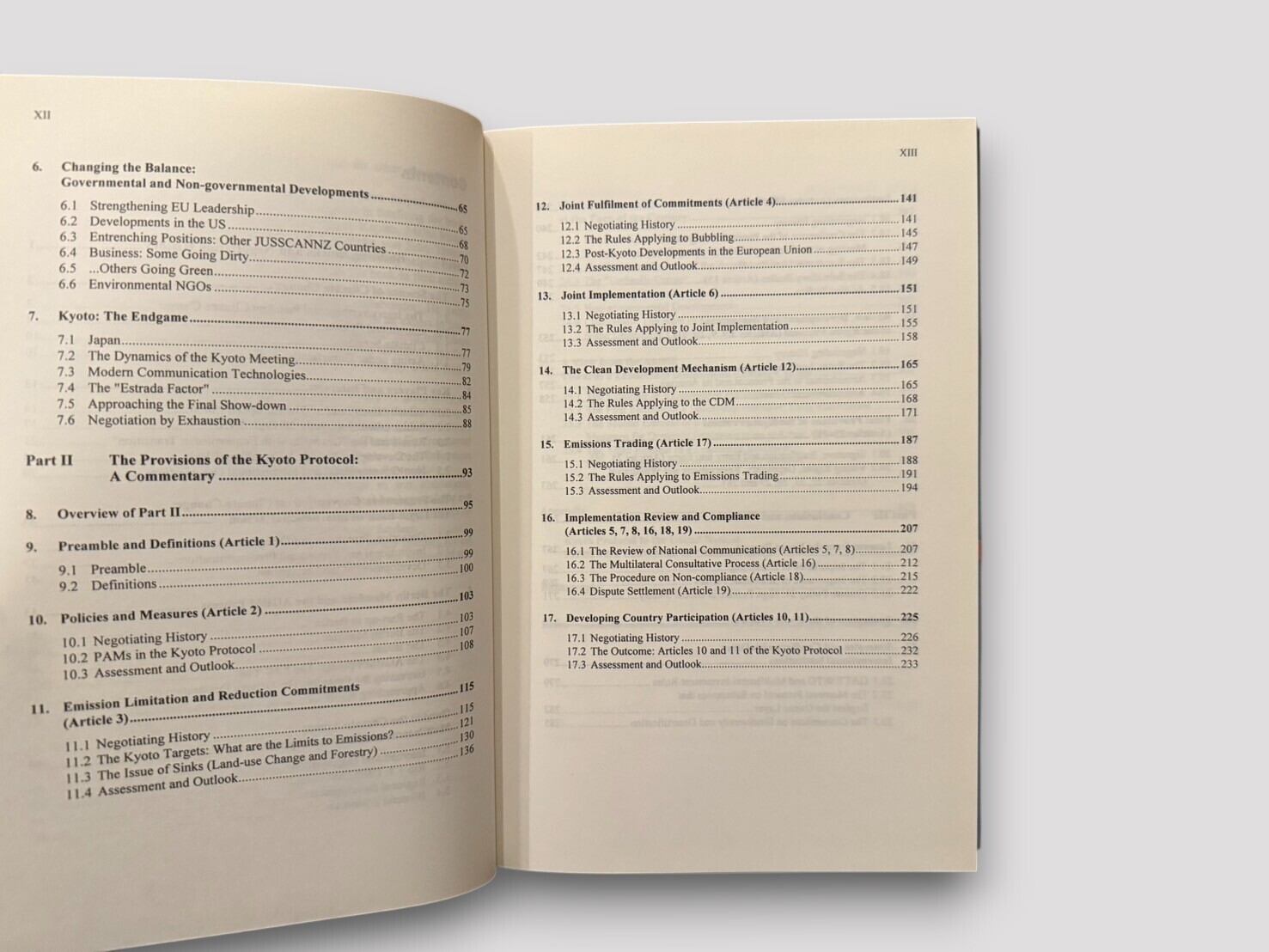 京都議定書をめぐる国際交渉とその制度的枠組みを詳解した、気候変動政策に関する重要文献。国際政治・環境法・地球温暖化問題に関心を持つ研究者・実務家にとって、不可欠のリファレンスといえる一冊。序文は交渉の中心人物であるラウル・エストラーダ=オユエラが執筆している。1999年刊行初版。