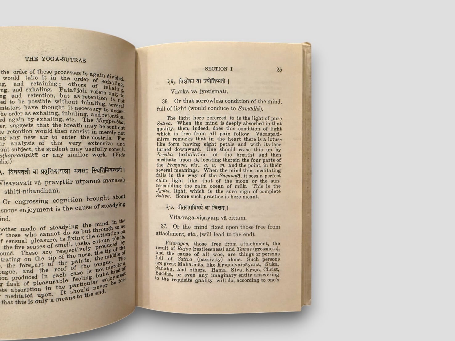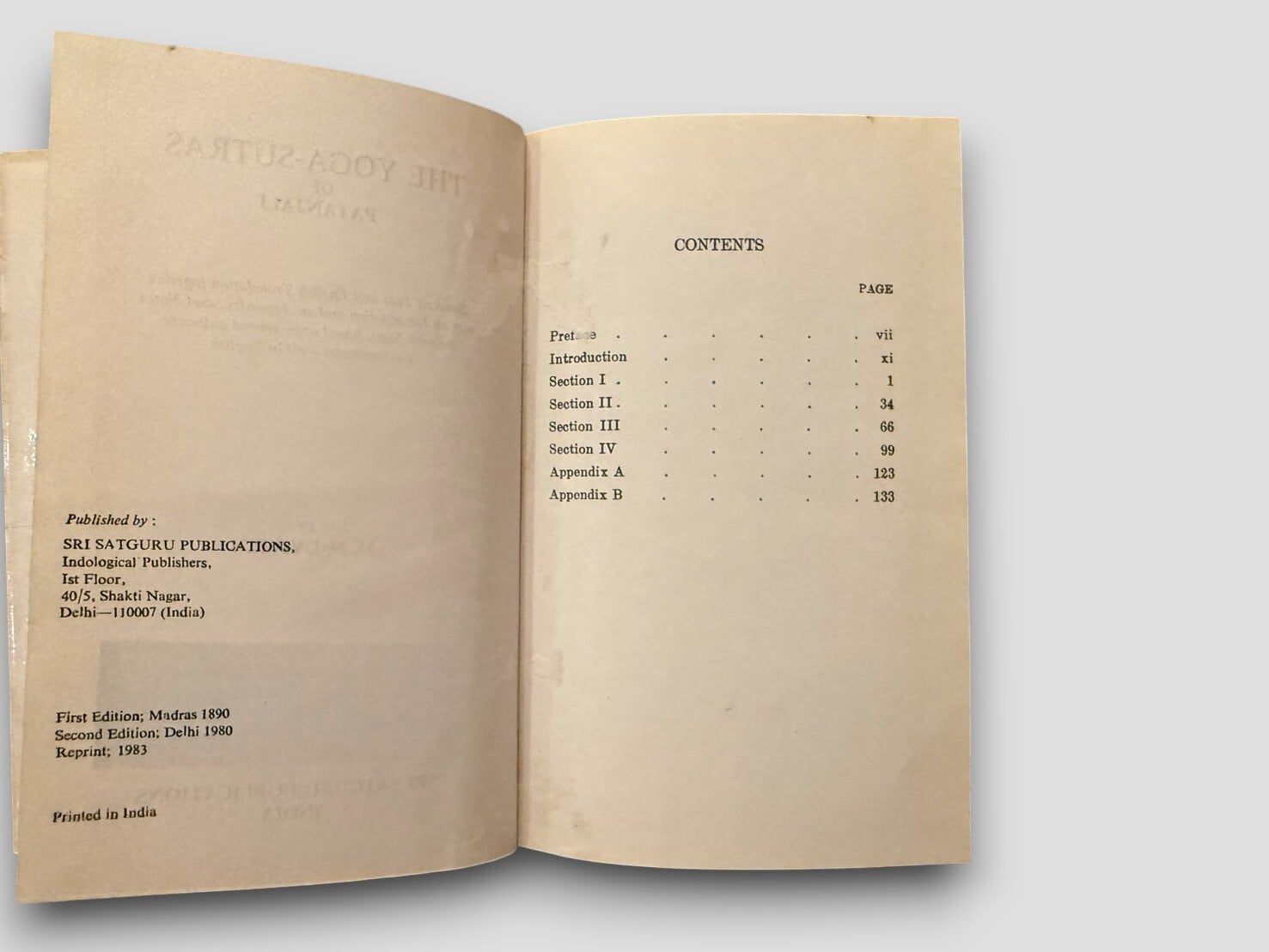 ヨーガ思想の古典『ヨーガ・スートラ』を、サンスクリット原文とともに英訳・注解・序論・付録を加えて紹介した学術的定番書。瞑想、倫理、知覚の探求にかかわる「八支則」を中心に、インド哲学における精神修養と解脱への道を丁寧に読み解く一冊。初版は1890年刊行」、本書は1983年に刊行されたリプリント。