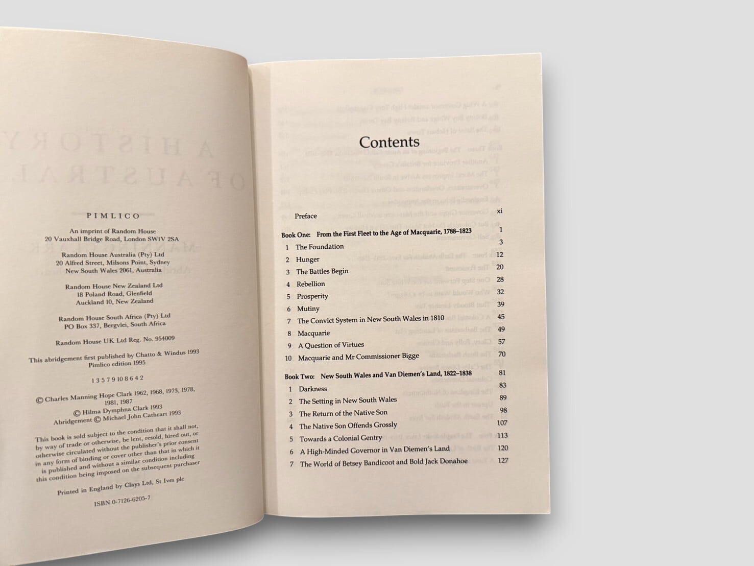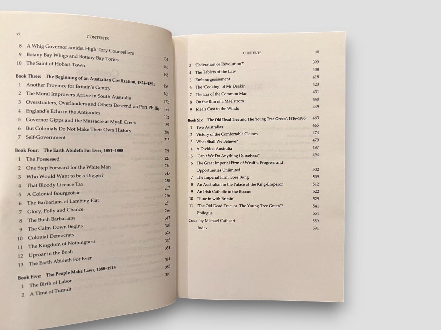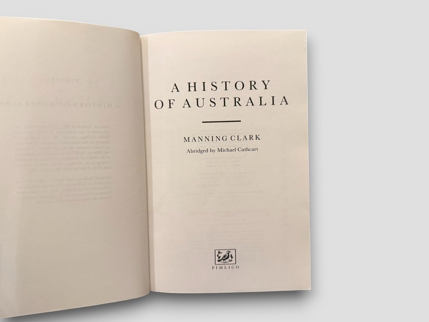 オーストラリアを代表する歴史家マニング・クラークによる6巻本の大著『A History of Australia』を、Michael Cathcart が要約・編纂した一巻本。先住民の時代から植民地支配、独立、戦争、社会改革に至るまで、オーストラリアの歩みを壮大なスケールで描き出し、その形成を文学的な筆致で紡いだ歴史書。1995年刊行。