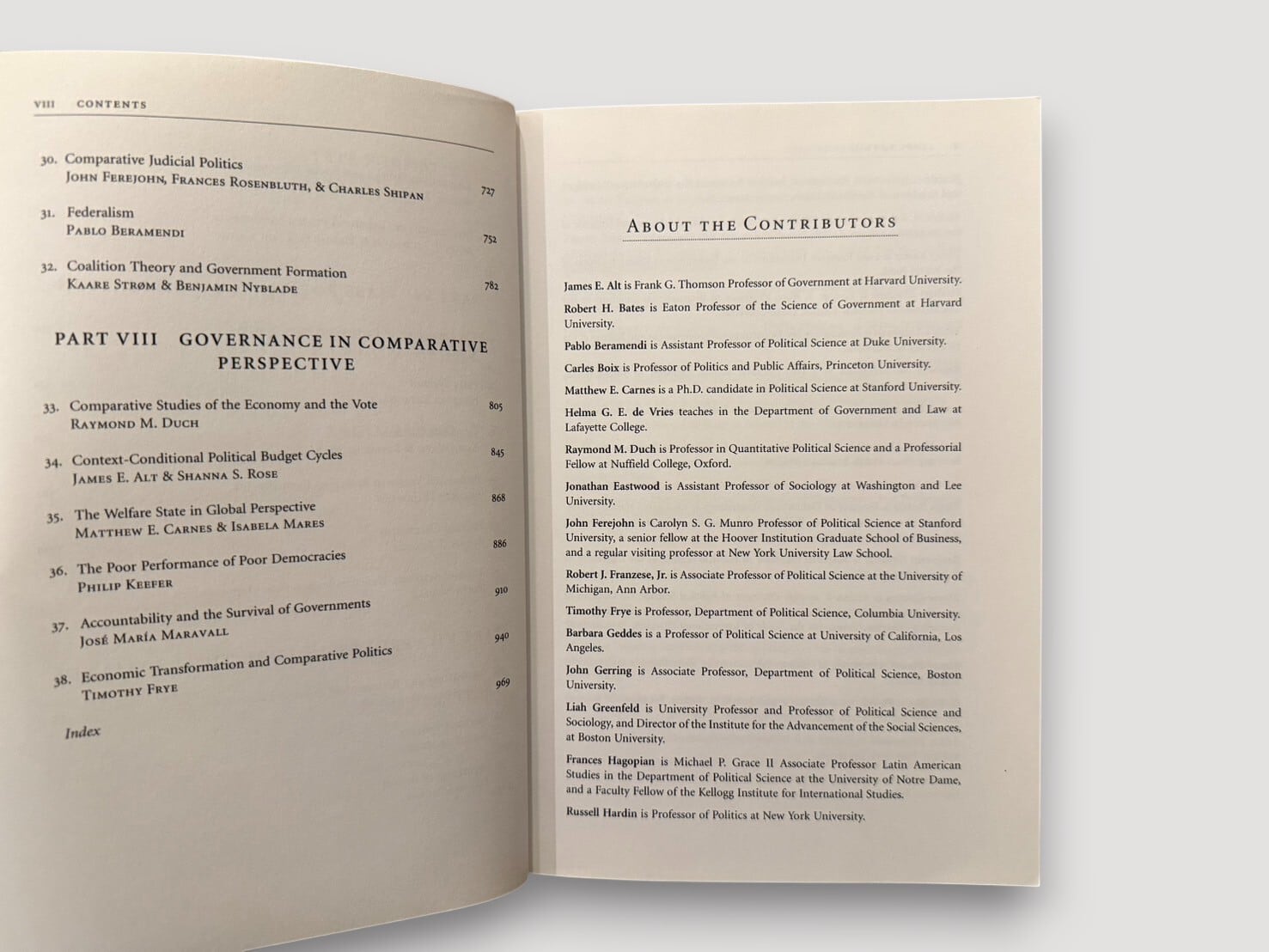 比較政治研究の最前線を一望できる、オックスフォード政治学ハンドブック・シリーズの中核巻。本書は、理論・方法論から国家形成、民主主義の移行、紛争・社会運動、選挙制度、政党、福祉国家に至るまで、比較政治学の主要テーマを網羅的に論じている。Carles BoixとSusan C. Stokesの編纂のもと、Robert H. Bates、Barbara Geddes、Charles Tilly、Frances Hagopian ら著名な比較政治学者が42章を分担執筆。方法論の多様性を尊重しつつ、地域横断的な事例研究も豊富に盛り込まれ、研究者・大学院生にとって必携のスタンダードとなっている。2009年刊行ペーパーバッグエディション。