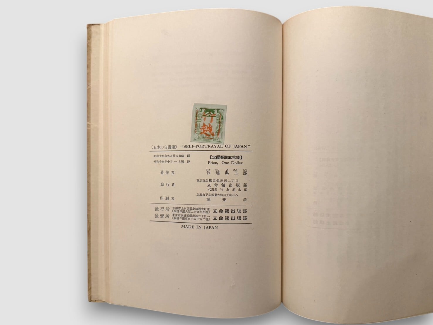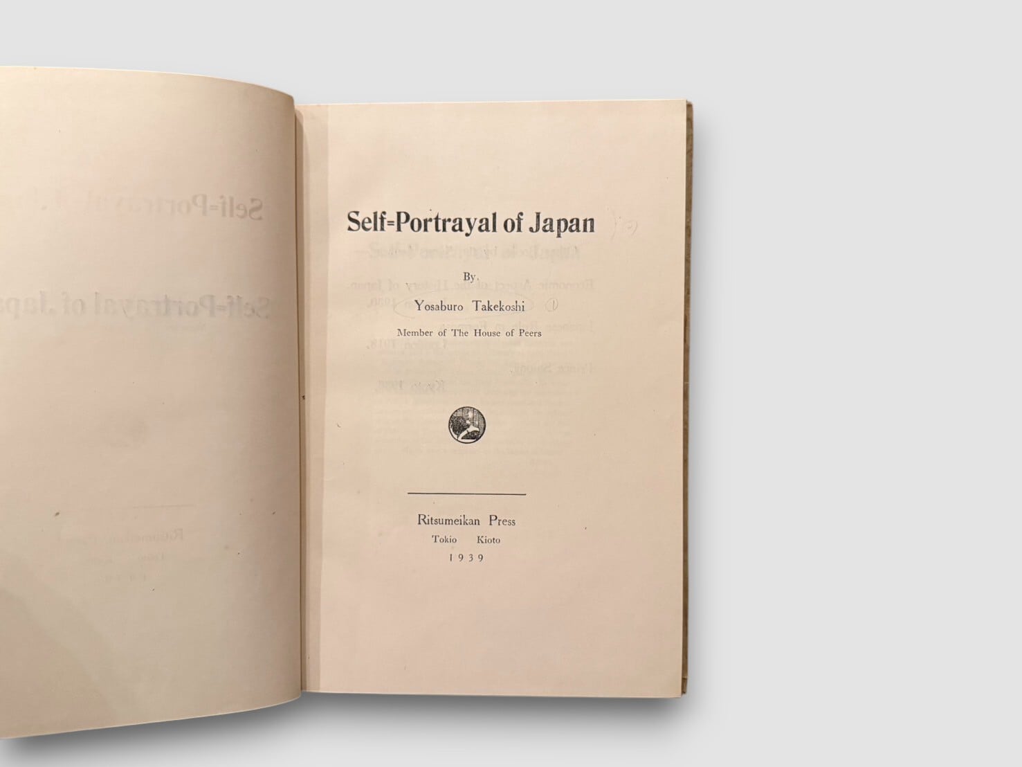 貴族院議員であり歴史家でもあった竹越與三郎による、戦前日本の国際的自己紹介書『Self-Portrayal of Japan』。本書は1939年に立命館出版部から刊行された英語論説書で、国内外の誤解や偏見に対する反論、日本の発展の経緯や西欧諸国との関係などが、歴史・倫理・経済・思想など多角的な視点から語られている。巻頭から日英併記形式で日本語原文も収録。当時の国際的対話への意識が色濃く反映された一冊。