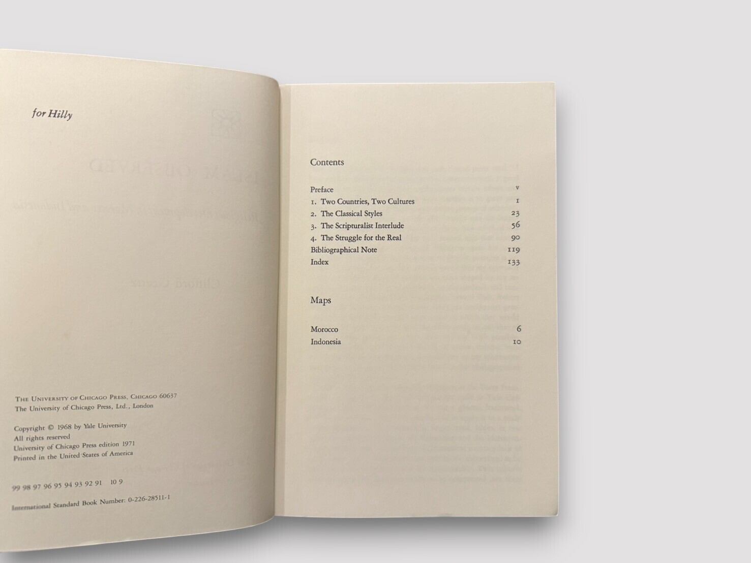 文化人類学者クリフォード・ギアツによる宗教比較研究の代表作。モロッコとインドネシアという対照的なイスラーム社会を題材に、それぞれの文化的背景が宗教表現にどのようなかたちを与えるかを探る。政治構造、歴史的文脈、民族的気質をふまえて、宗教が社会的象徴としていかに機能するかを描き出した名著であり、象徴人類学の方法論的基盤をなす一冊でもある。1971年刊行。