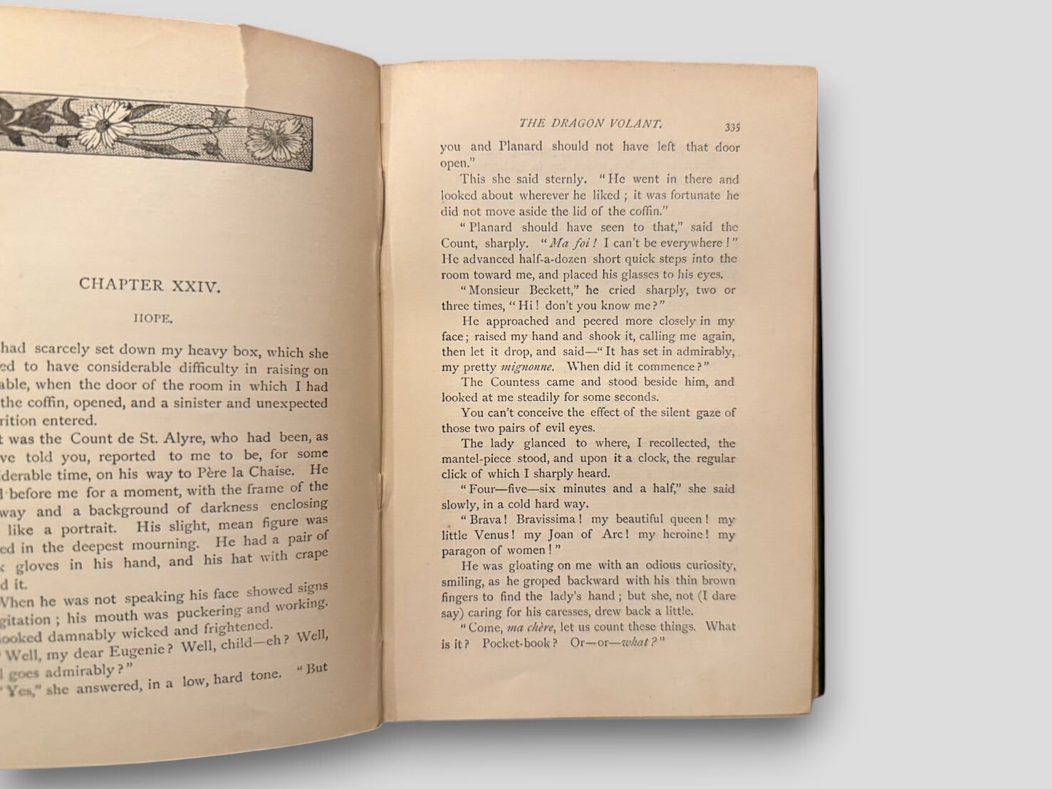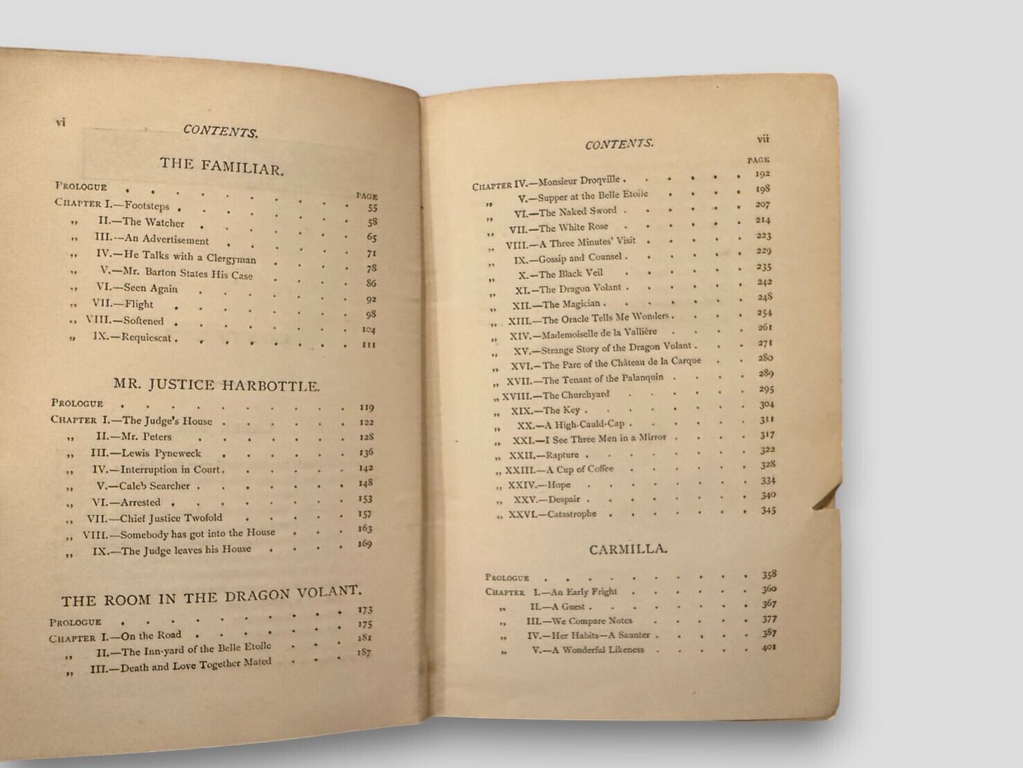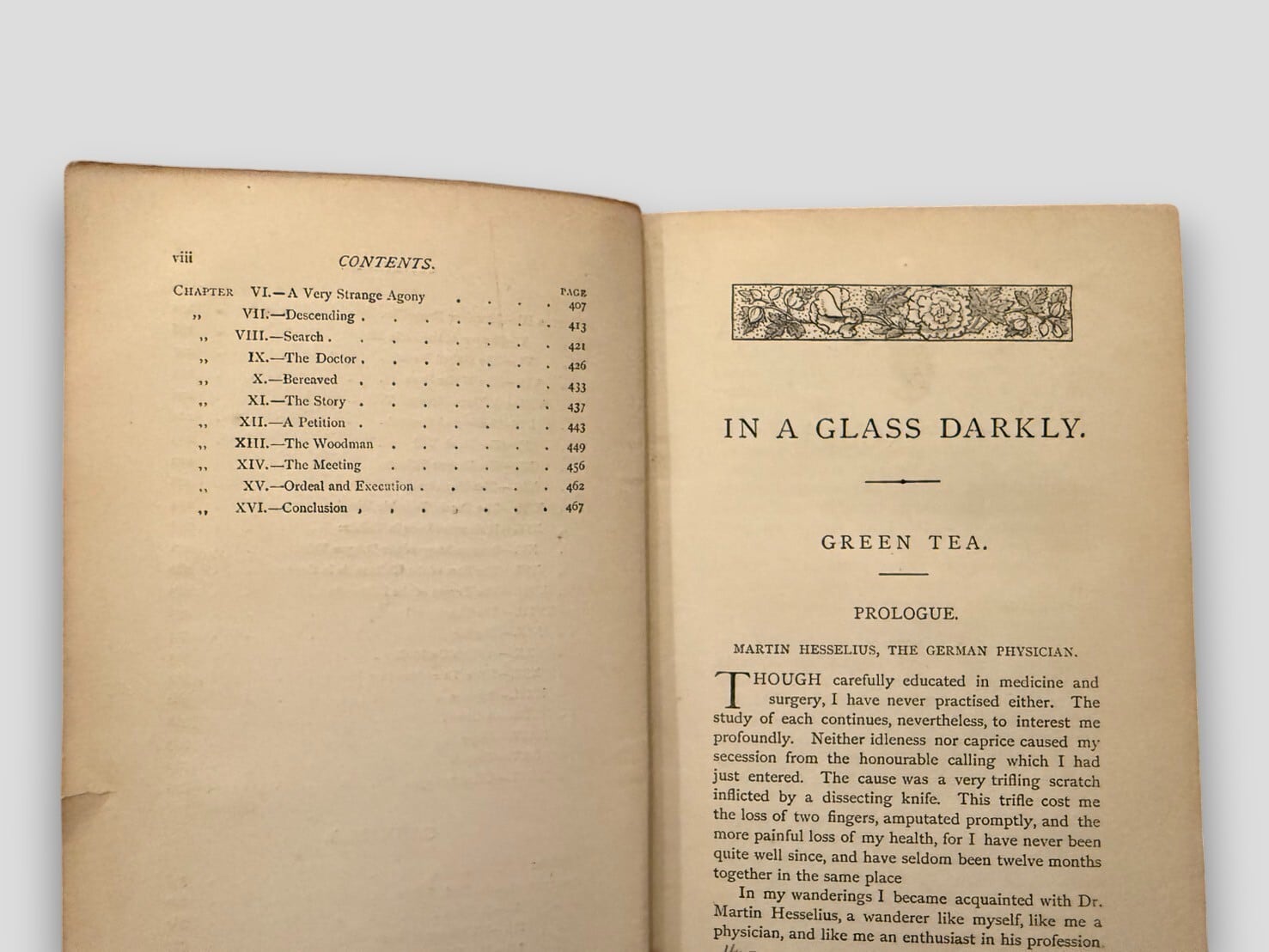 19世紀ゴシック文学を代表する作家レ・ファニュによる怪奇幻想短編集『In a Glass Darkly』。本書は1886年リチャード・ベントリー社による「New Edition」(初版は1872年刊行)。吸血鬼譚「Carmilla(カーミラ)」や「Green Tea」など、のちのゴシック作品に影響を与えた名作5編を収録。心理的恐怖と超自然が交錯するレ・ファニュらしい構成となっている。