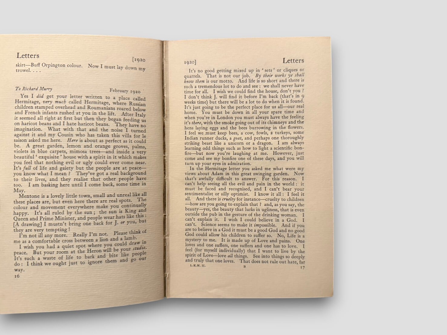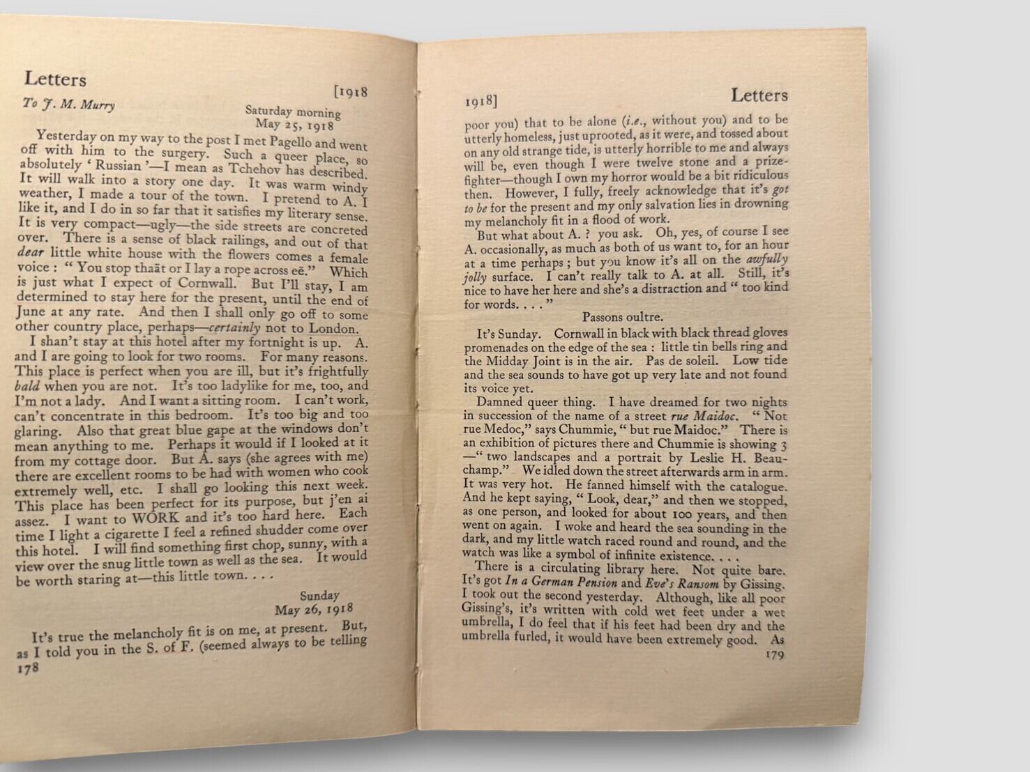 キャサリン・マンスフィールドが残した膨大な書簡から、夫であり文学評論家のJ・ミドルトン・マリーが編集・編纂した全2巻の書簡集。両巻とも冒頭に異なる年の肖像写真(Vol. I=1913年、Vol. II=1921年)を収録し、各巻は友人アイダ・コンスタンス・ベイカーに献呈されている。モダニズム文学の貴重な一次資料として、研究者や愛好家にとって必携の揃いセット。1928年刊行初版。