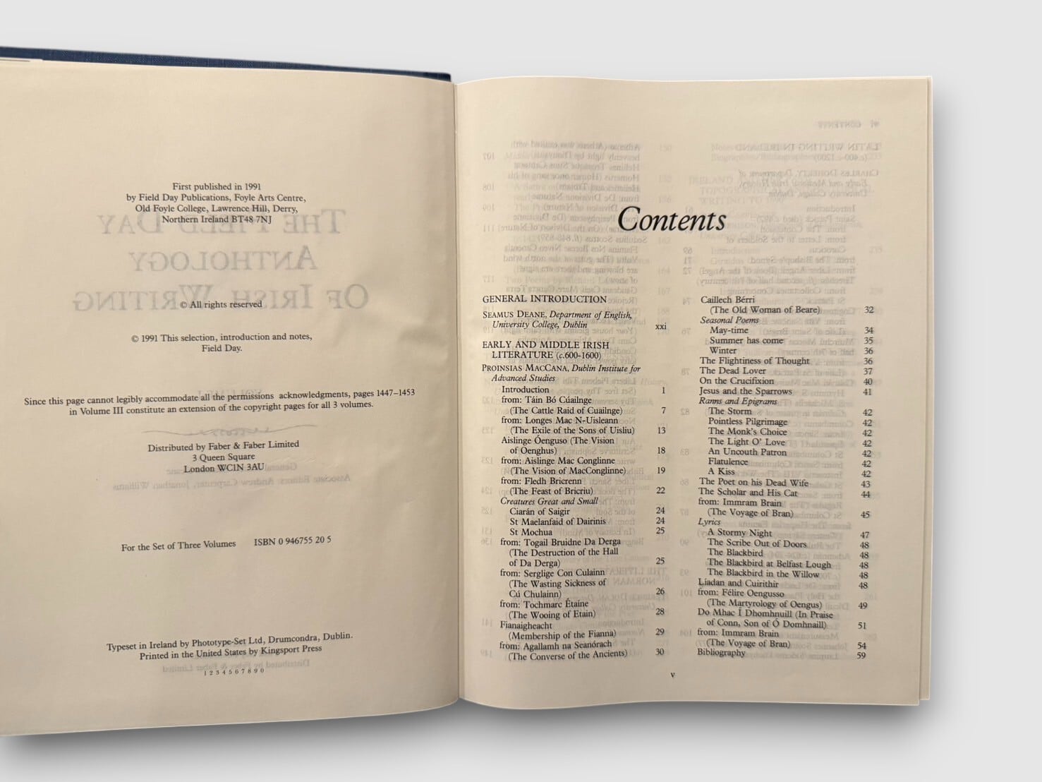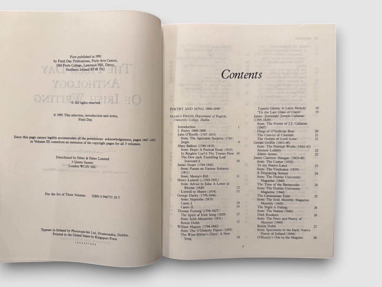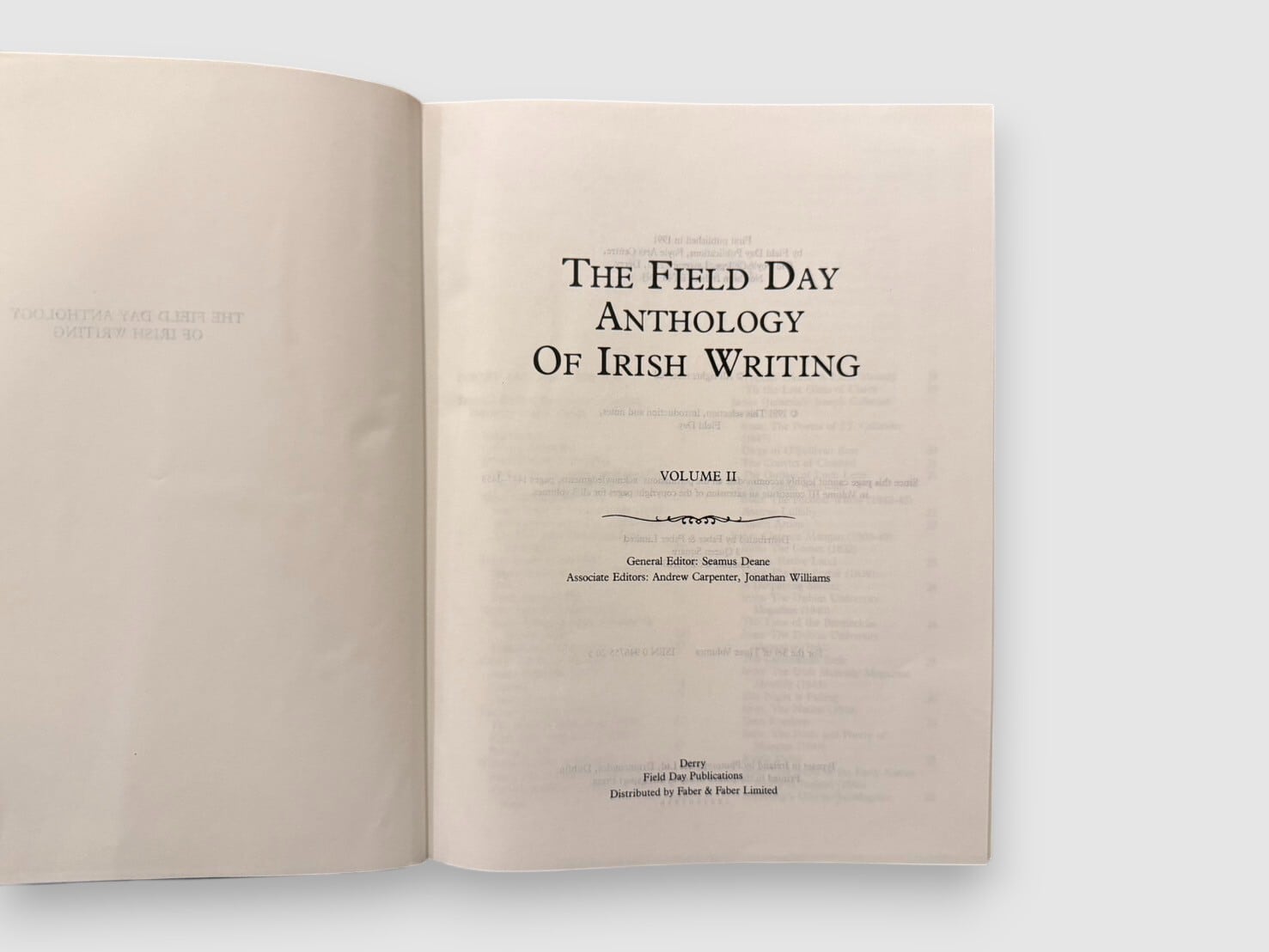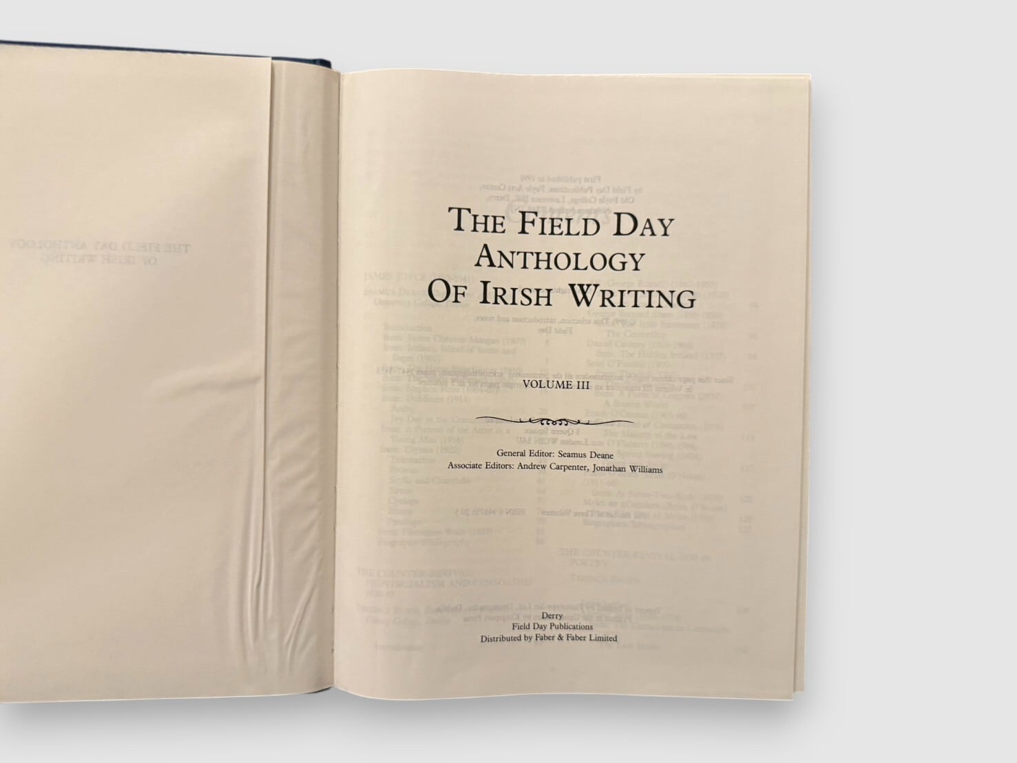 Publisher:Field Day Publications(Derry, Northern Ireland)/Distributed by Faber & Faber Limited(London), 1991