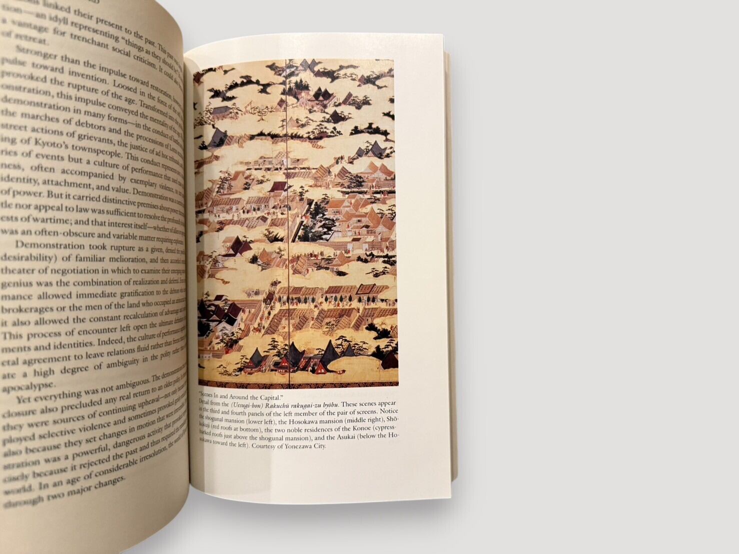 メアリー・エリザベス・ベリーによる日本戦国期研究の代表的著作。応仁の乱(1467–1477)によって荒廃した京都における社会秩序と都市文化を、町人や住民の視点から精緻に分析している。暴力と混乱のただ中で、都市社会がどのように秩序を再編し、新たな文化的・社会的枠組みを形成していったのかを明らかにする。1994年初版、現本は1997年刊行の初版ペーパーバック。