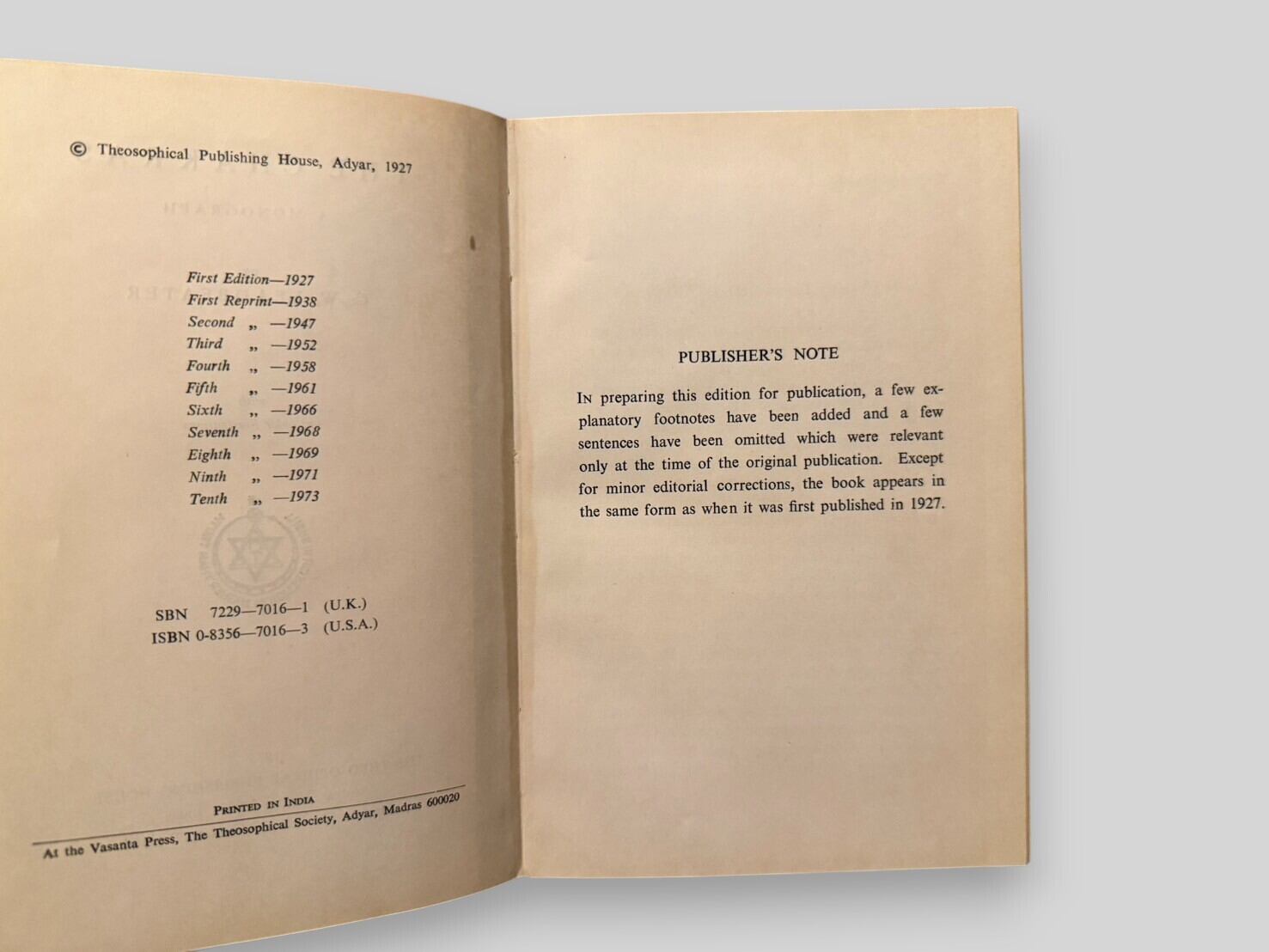 Publisher:The Theosophical Publishing House (Adyar, Madras / Wheaton, Ill. / London),1973