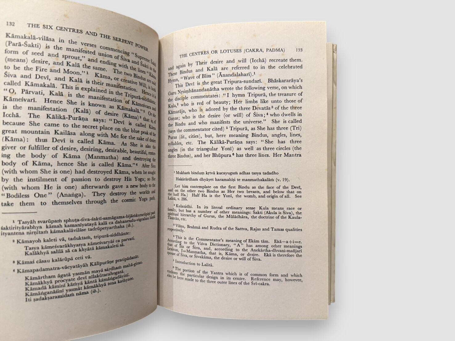 筆名Arthur Avalonで知られるイギリスの東洋学者、サー・ジョン・ジョージ・ウッドロフによるタントラ思想とクンダリニー・ヨーガの根本テキストを英訳と注釈とともに収録した西洋における決定的文献。サンスクリット原典「Ṣaṭ-Cakra-Nirūpaṇa(六つのチャクラの解説)」と「Pādukā-Pañcaka(五重の礼拝歌)」が含まれ、詳細な序論と解説を加えている。クンダリニー覚醒に関わる理論と実践、チャクラ(蓮華)の段階、身体と意識の関係が綿密に論じられており、インド思想史のみならず、ヨーガ・神秘主義研究の基盤を築いた古典的研究書である。初版刊行は1919年。本書は1974年に刊行された第10版。