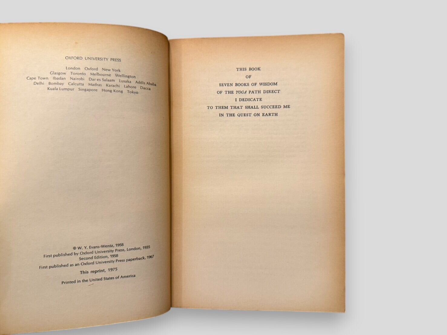 チベット仏教の秘伝的実践と哲学的教義を体系的にまとめた重要文献であり、西洋にその全貌を紹介した古典的著作。編者W. Y. エヴァンス=ウェンツが、ラマ カジ・ダワ=サムダップによる英訳を基に注釈を加え、西洋読者へ向けて出版したものである。本書は「大いなる道の七つの智慧の書(Seven Books of Wisdom of the Great Path)」を中心に構成され、心理的熱(psychic-heat)、夢のヨーガ、光明の教義、死後の意識転移など、いわゆる「六大ヨーガ」を含む実践的教えを詳細に伝える。また、「非我のヨーガ」「五智(Five Wisdoms)」に関する教えなども収められ、仏教哲学の精髄と実践体系を併せて学ぶことができる。