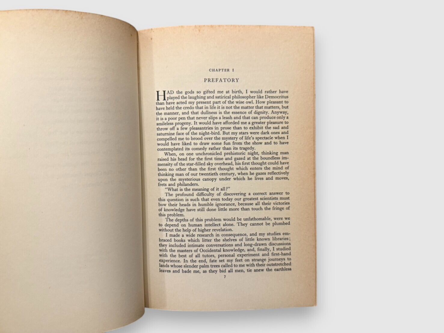 イギリス出身の哲学者ポール・ブラントン(1898–1981)による内面的探求の書。1939年に初版が刊行されたスピリチュアル思想の古典である。本書は、「神とは何か」「宗教の意味」「八福音」「自己分析」「禁欲の意義」といった普遍的問いを基盤に、西洋の哲学的伝統と東洋の精神修行(ヨーガや瞑想)の実践知を結びつけている。ブラントンはヨーガ行者やインドの聖者との交流を通して、個人の精神的成長と人類全体の進化を視野に入れた思想を展開し、本書はその核心をまとめたものといえる。1974年刊行第13刷。