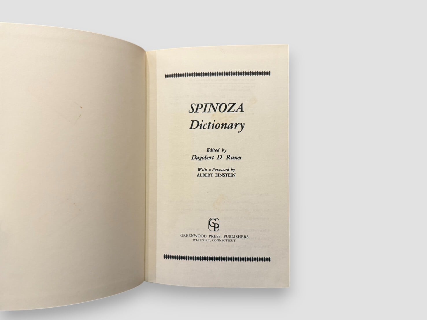 バールーフ・スピノザの思想を理解するために編纂された重要な用語辞典。編者は哲学者ダゴベルト・D・ルネス。本書の冒頭にはアルベルト・アインシュタインによる序文(1951年プリンストン執筆)が収められ、スピノザの厳格な思考形式とその思想の普遍的意義を称えている。
