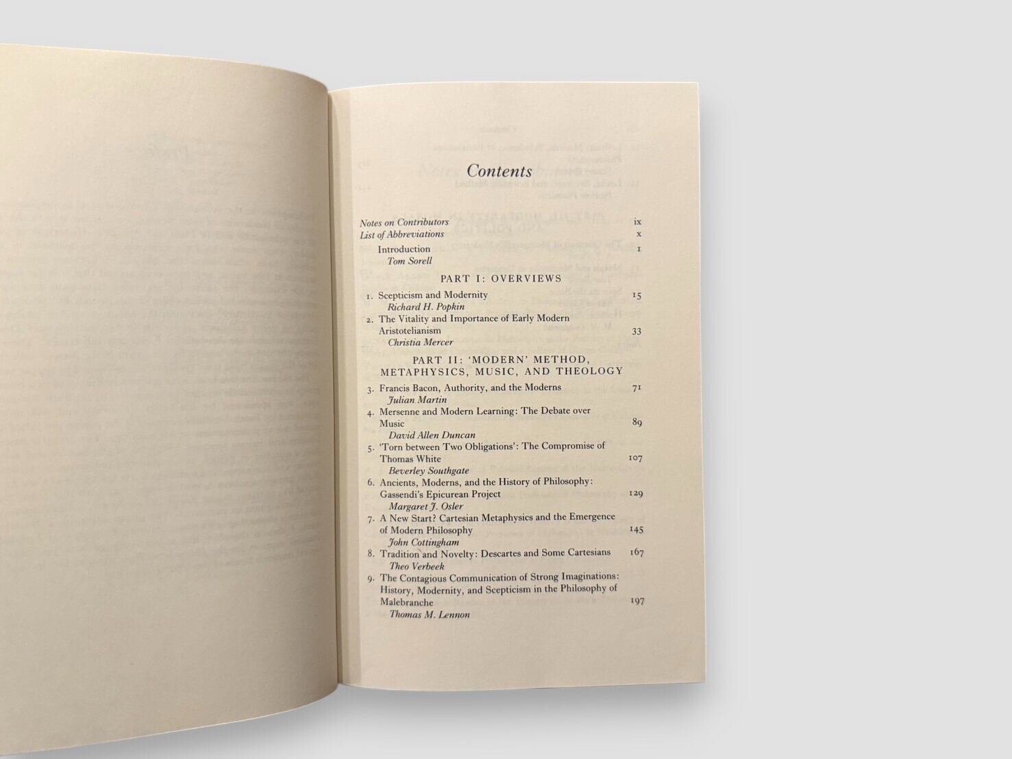 本書は、マキャヴェッリからライプニッツに至るまでの「新しい哲学」と「伝統的な哲学」の緊張関係をテーマとした研究論文集である。編者は哲学史家トム・ソレル。収録論文は、デカルト、ホッブズ、スピノザ、ロック、マキャヴェッリなど近世思想史を代表する思想家を横断的に扱い、懐疑主義・近代的理性・科学的方法・政治思想など、多角的な観点から「近代哲学の誕生」を解明する。イギリス、アメリカ、カナダをはじめ国際的な研究者による共同研究の成果として刊行された一冊であり、初学者から専門研究者まで広く参照される文献。