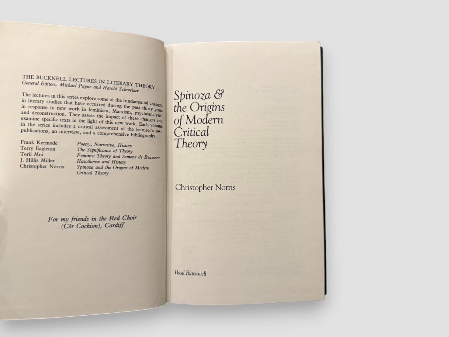 【SFF161】【FIRST EDTION】Spinoza & the Origins of Modern Critical Theory(1991) /Christopher Norris