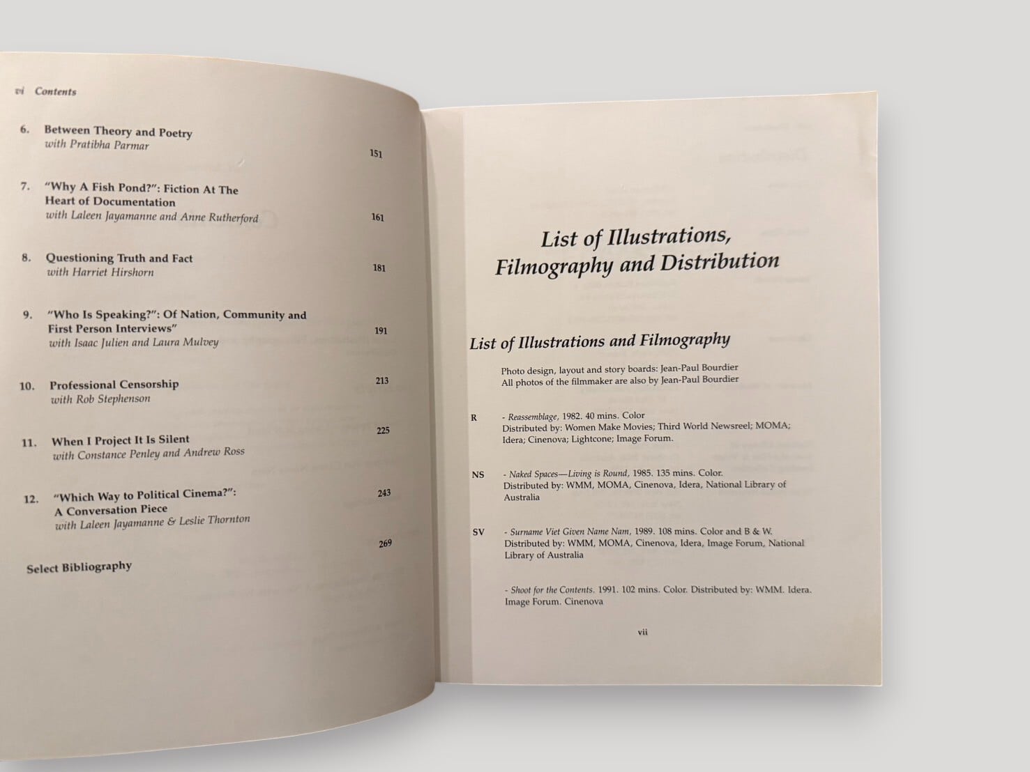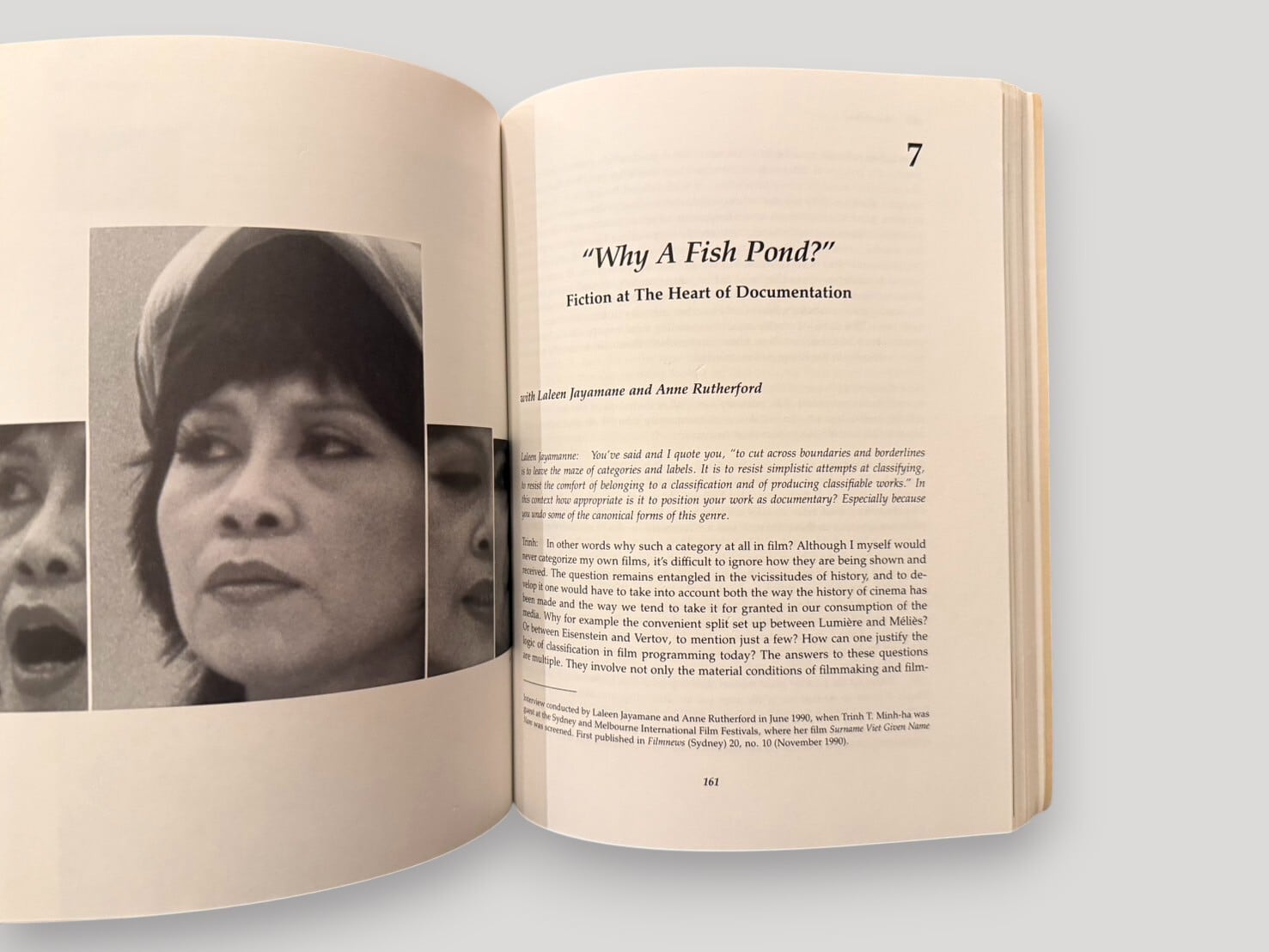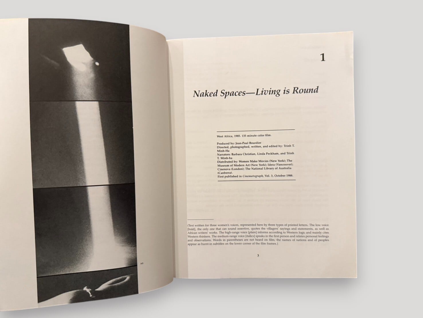 ベトナム出身の映画作家・理論家Trinh T. Minh-haによる重要なテキスト集。1980年代から90年代にかけて制作された映像作品の脚本を収録するとともに、映像論やポストコロニアル批評に関するインタビューを多数収録。映像と言語、事実とフィクション、主体と他者の関係を問い直し、フェミニズム映画理論や文化批評において大きな影響を与えた1冊。1992年刊行初版。