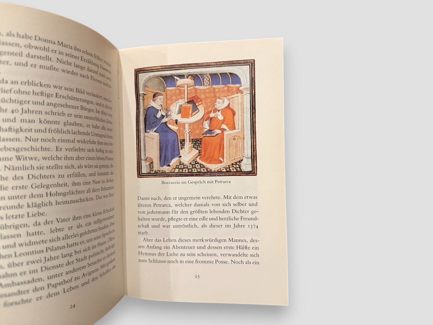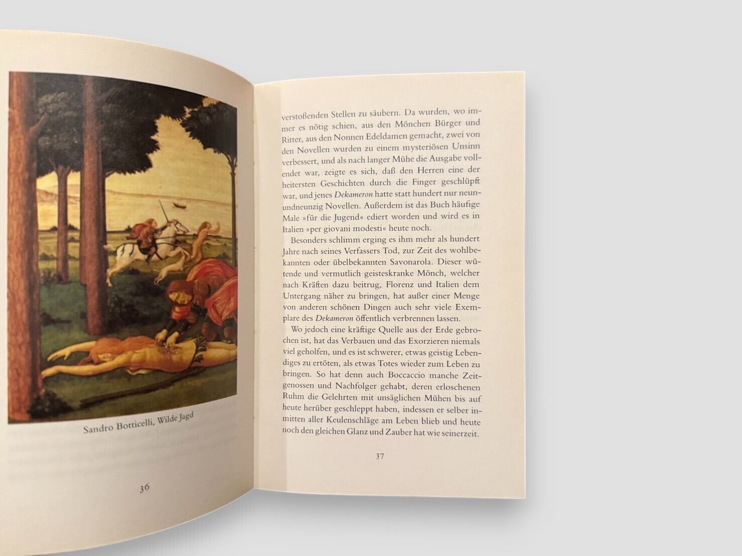20世紀ドイツ文学を代表する作家ヘルマン・ヘッセ(1877–1962)が、ルネサンス期イタリアの作家ジョヴァンニ・ボッカッチョ(1313–1375)を論じた随筆的評論。フリッツ・ヴァーグナーの解説を付した本書は、1995年にインゼル出版社のInsel-Bücherei Nr.1131として刊行されたもので、美しい装幀と挿画を伴ったコレクション価値の高い一冊。