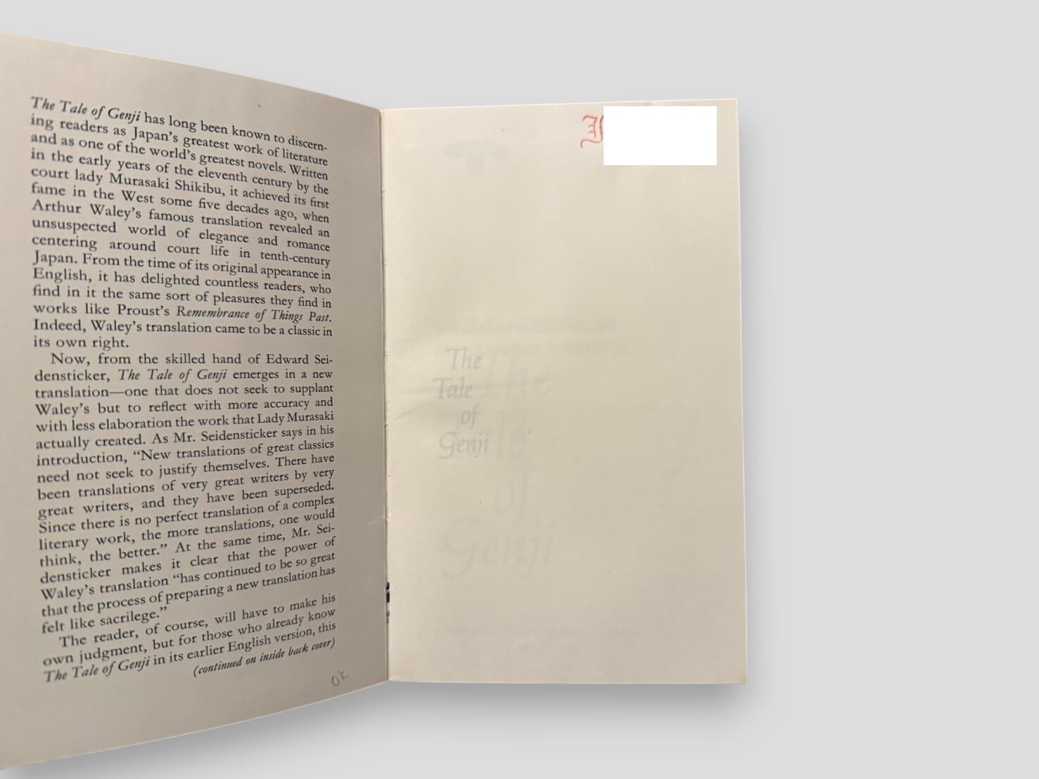 【SJ785】【FIRST TUTTLE EDTION】The Tale of Genji(Genji Monogatari)Two-volume set in slipcase (1978) /Murasaki Shikibu