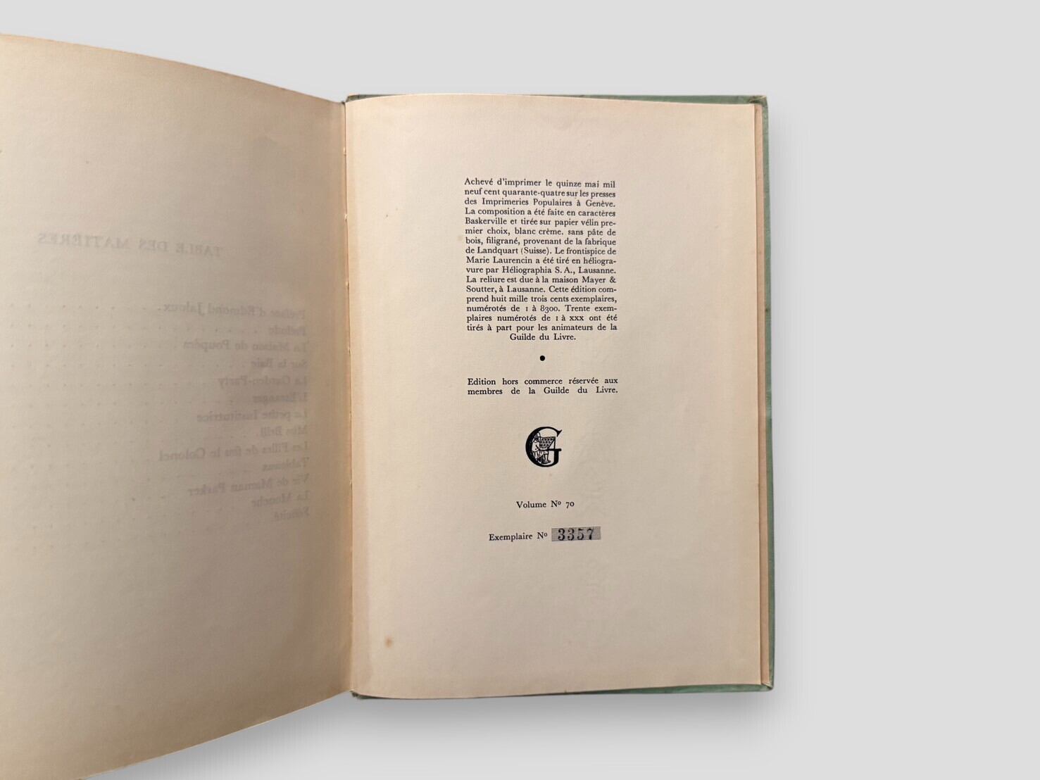 Publisher:Guilde du Livre(Lausanne),1944.Limited to 3000 copies, this being No. 3357.