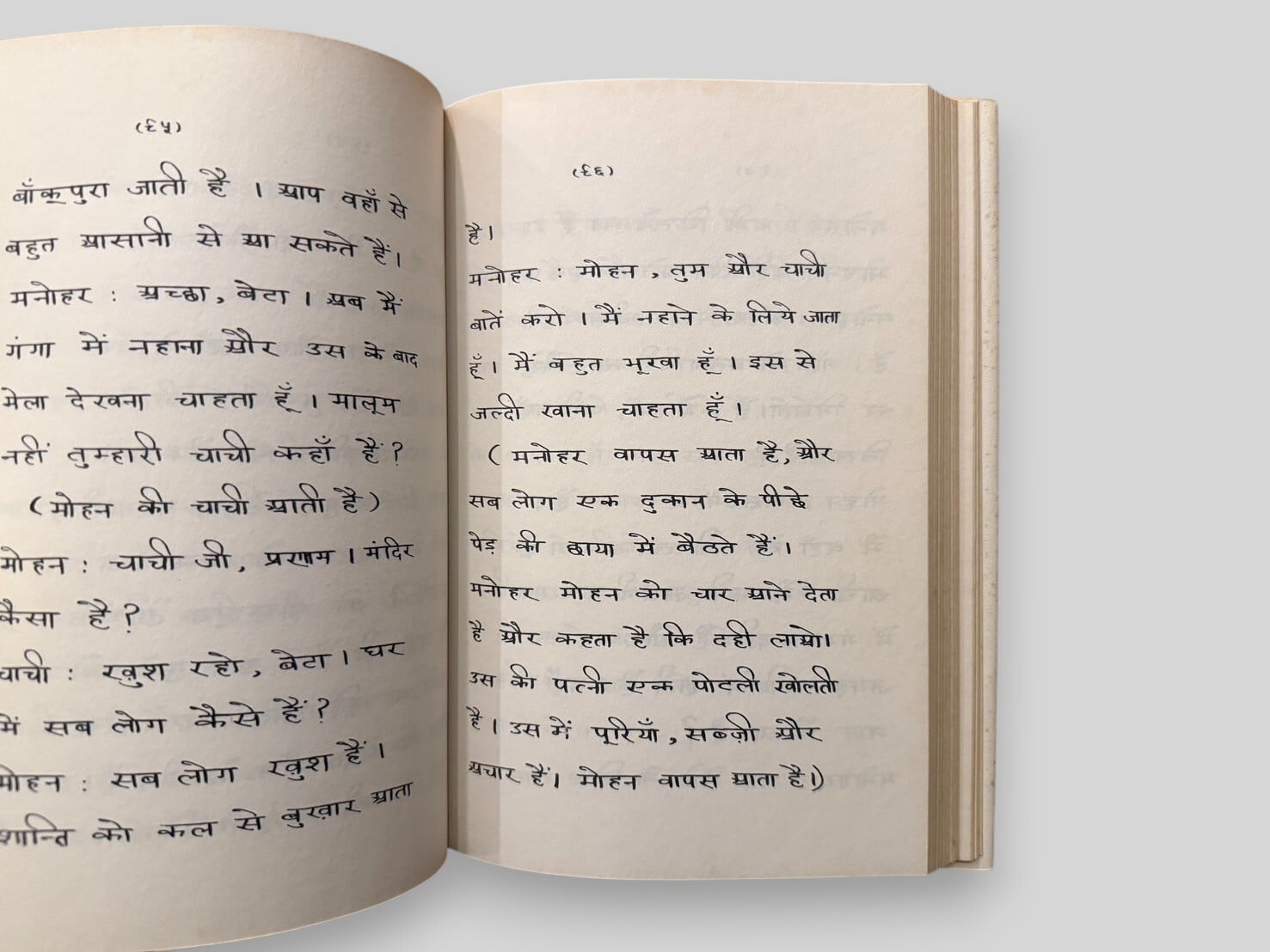 ヒンディー語学習者のための入門読本。ローマ字表記とデーヴァナーガリー文字による課題文を併記しながら、発音・会話・文法練習を段階的に習得できる構成をとっている。刊行当時からアメリカの大学におけるヒンディー語教育の基礎教材として広く利用された1冊。1971年刊行初版。