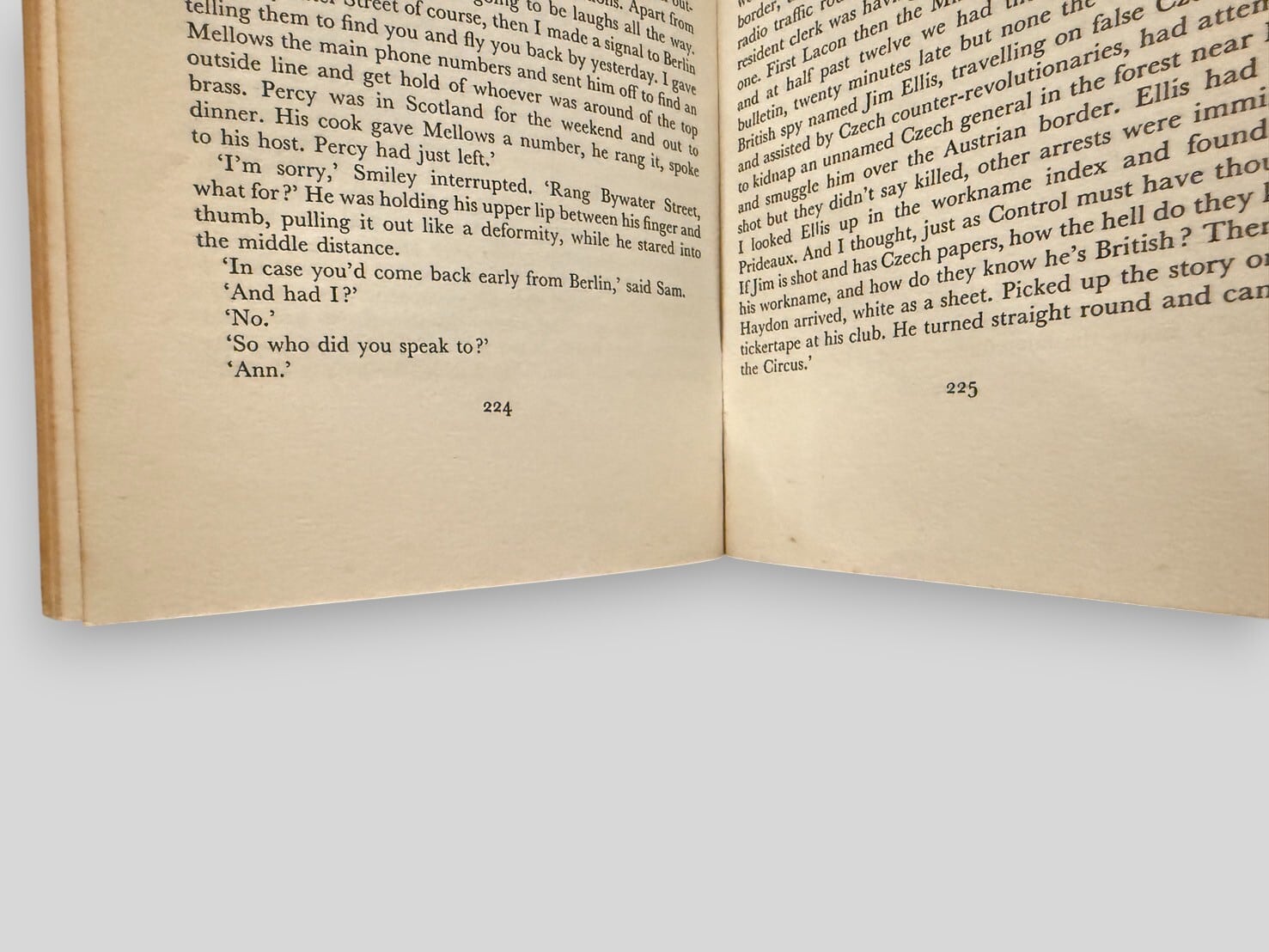 英国情報部「サーカス」に潜む裏切り者を追うジョージ・スマイリーの知略と執念が描かれ、スパイ小説の古典として高く評価されている。1979年にはアレック・ギネス主演でBBCによってドラマ化され、2011年にはゲイリー・オールドマン主演で映画化されるなど、世代を超えて愛され続けている。初版を手にすることは、冷戦文学の歴史そのものを握る体験に等しい。