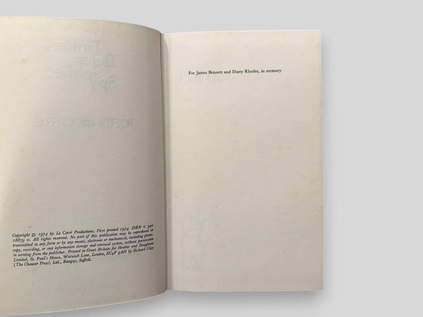 ジョン・ル・カレの代表作にして、冷戦時代のスパイ文学を決定づけた名作『『ティンカー、テイラー、ソルジャー、スパイ』。1974年に刊行された初版。