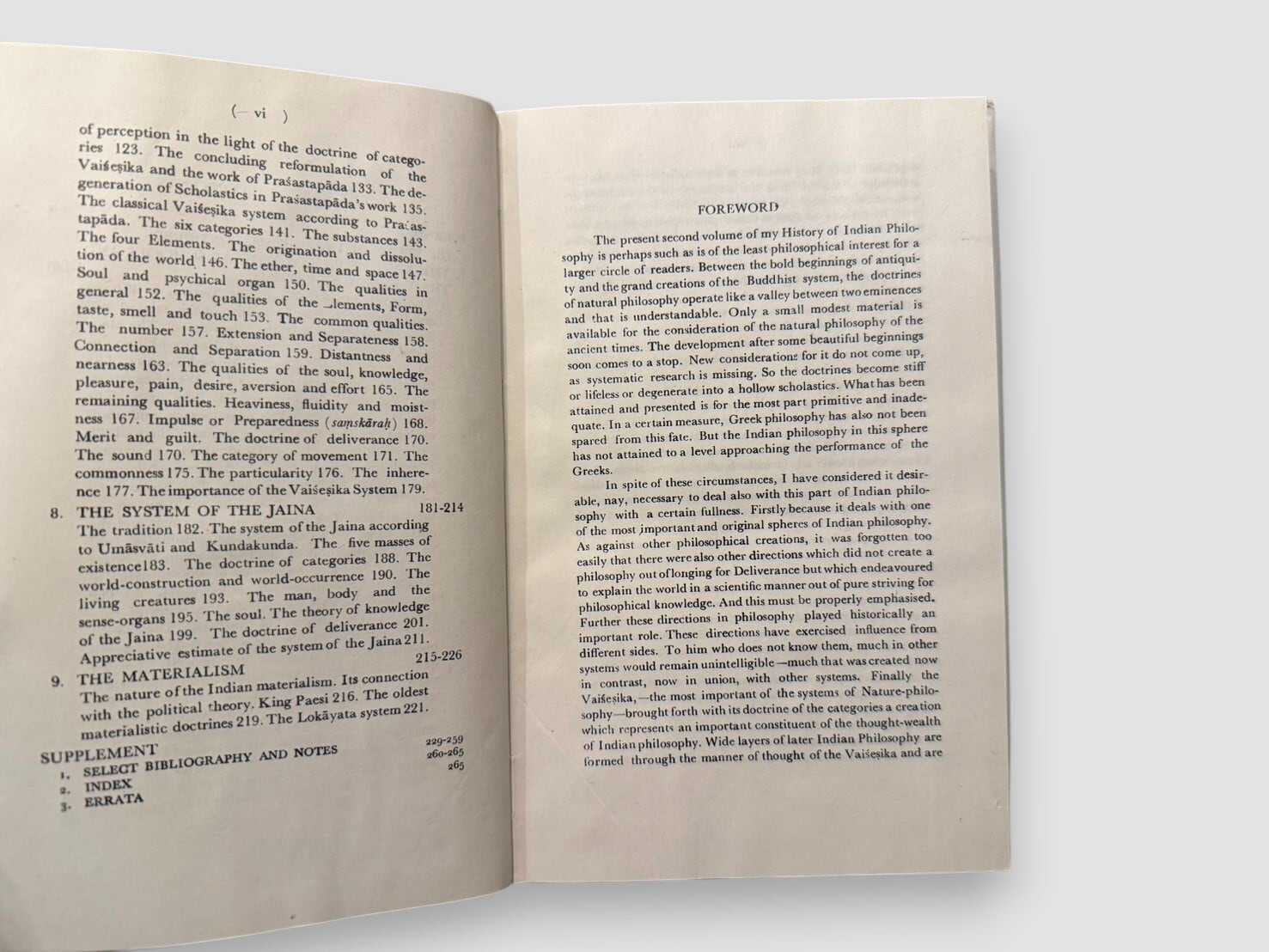 オーストリアのインド学者エーリッヒ・フラウヴァルナー(1898–1974)による代表作英訳版。インド思想の多様性と論理構造を緻密に分析した、インド哲学史研究における古典的文献。1993年に刊行された英訳版の全2巻揃い。