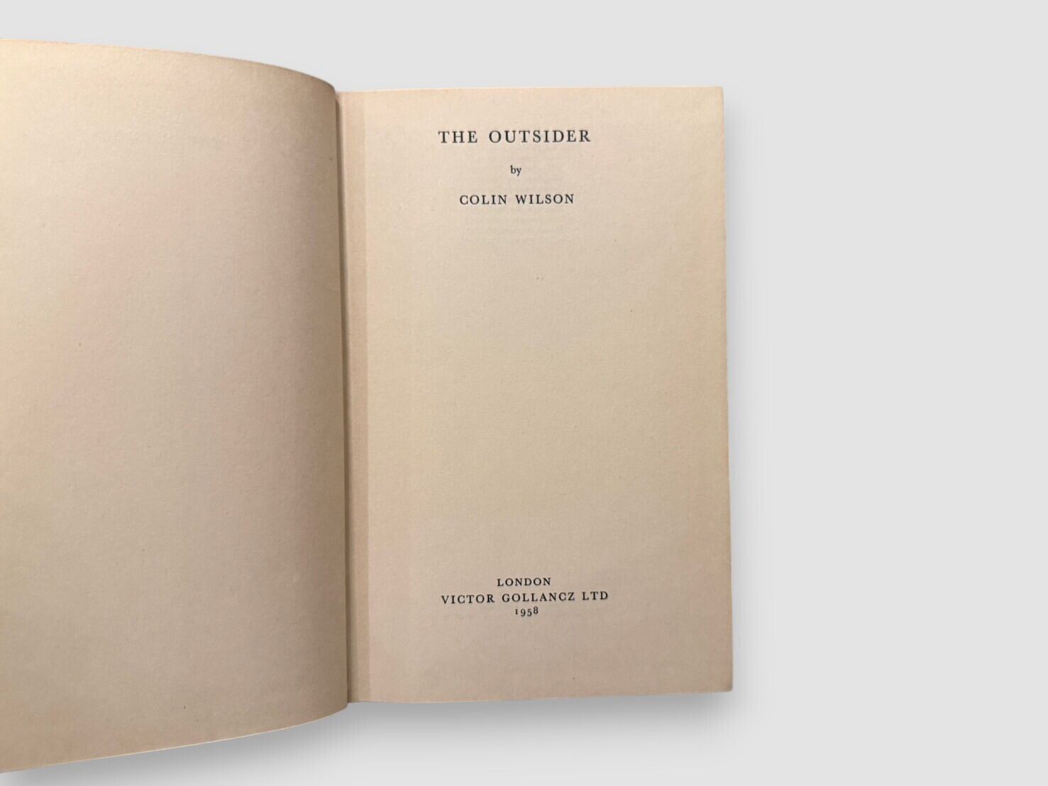 コリン・ウィルソン(1931–2013)のデビュー作にして代表作『アウトサイダー』。1956年に刊行され、20世紀半ばの文化批評を象徴する一冊として爆発的な注目を集めた。本書ではドストエフスキー、カフカ、ニーチェ、カミュといった思想家や作家を論じながら、現代における「疎外された人間=アウトサイダー」の精神を探究し、社会的孤立や存在の不安を鋭く描き出している。刊行当時「Angry Young Men(怒れる若者たち)」の文脈で迎えられ、ウィルソンを一躍時代の寵児とした。本書は1958年刊行の第12刷(Twelfth Impression)であり、初版からわずか2年で12刷に達した事実は、当時の熱狂的な人気と社会的反響を示している。