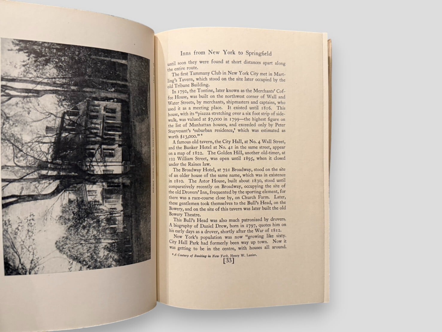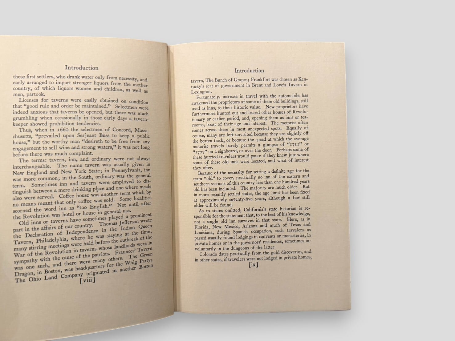 アメリカ文化史研究者イライス・ラトロップによる、アメリカ建国期から19世紀初頭にかけての「宿屋(inns)」と「酒場(taverns)」の文化的・建築的な歴史を辿る名著。ニューヨークやニューイングランドの宿屋や酒場を中心に、ペンシルベニア、バージニア、オハイオ、ケンタッキー、ミズーリなど中西部に至る地域まで幅広く網羅。各地の歴史的建物や文化的背景を詳細に描き出し、豊富な写真や挿画が当時の面影を伝えている。アメリカ生活文化史・建築史の資料としても価値が高い1冊。1936年に刊行された新版。スリップケース付き。