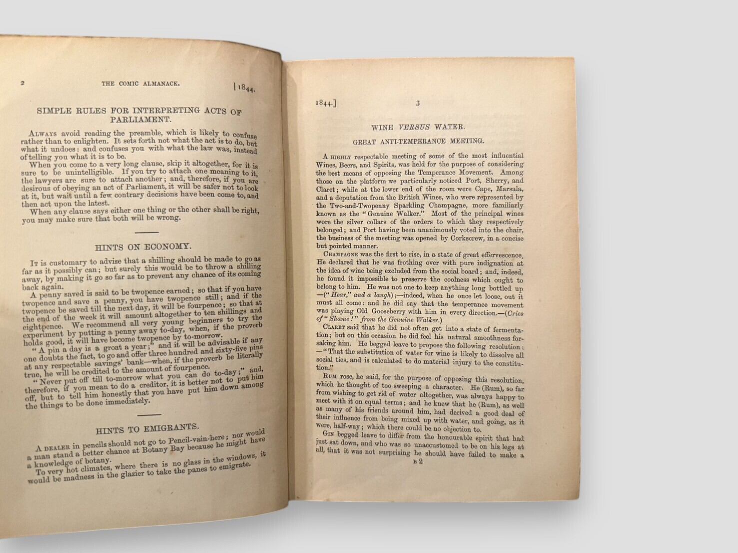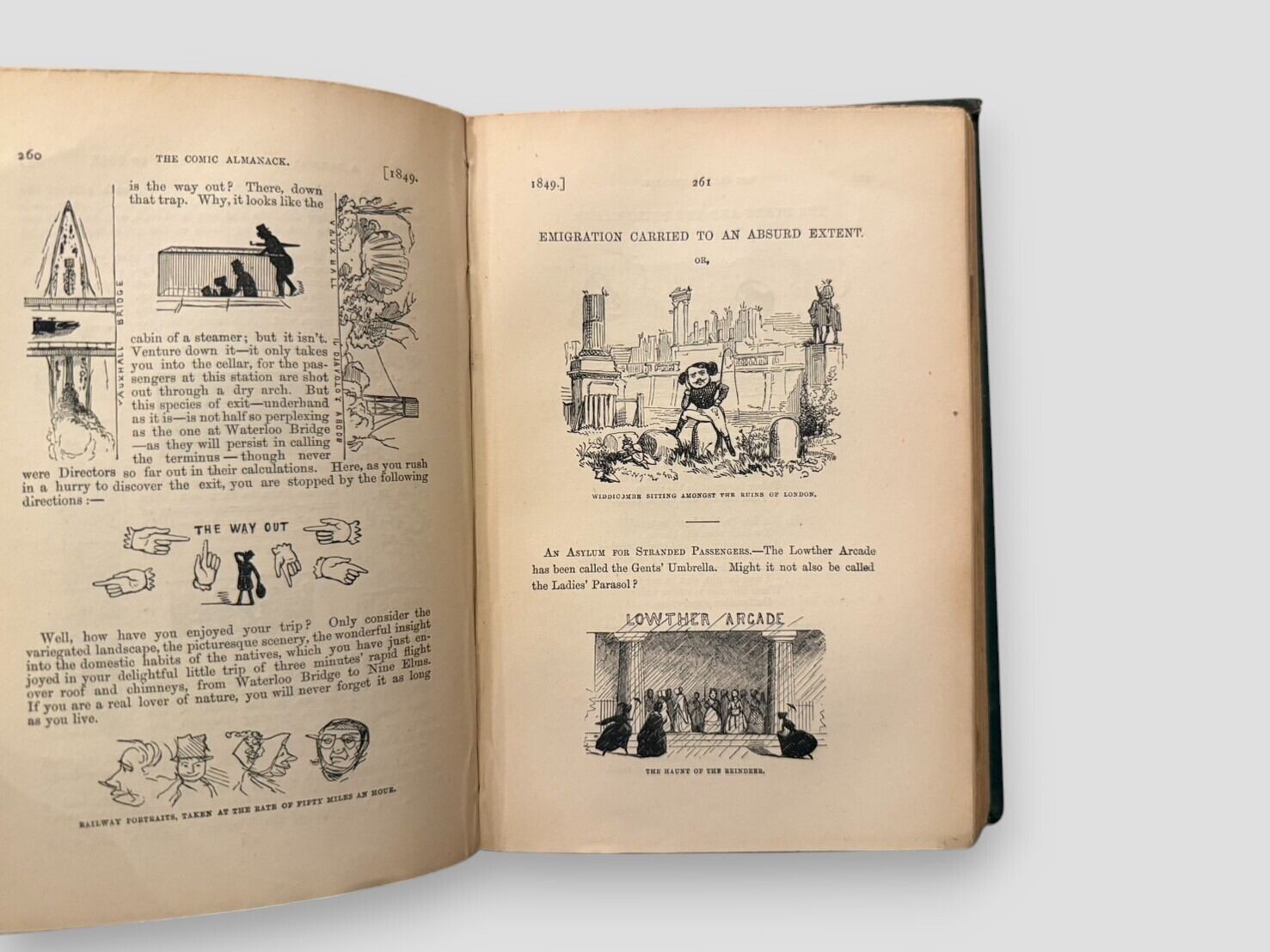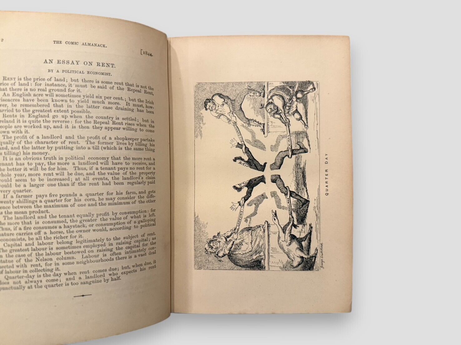 ジョージ・クルックシャンクによる多数の挿絵を収録した風刺年鑑『The Comic Almanack』の第2シリーズ(1844–1853)。ユーモラスな詩や短編、風刺的随筆、政治・社会を風刺するクイップやジョークが満載で、タッカーライ、アルバート・スミス、ギルバート・ア・ベケット、メイヒュー兄弟など当時の著名な作家たちも寄稿している。折込大判挿絵を含む数百点の木版画・銅版画を収録し、19世紀イギリスの大衆文化と風刺文学を伝える重要資料。刊行年不明。