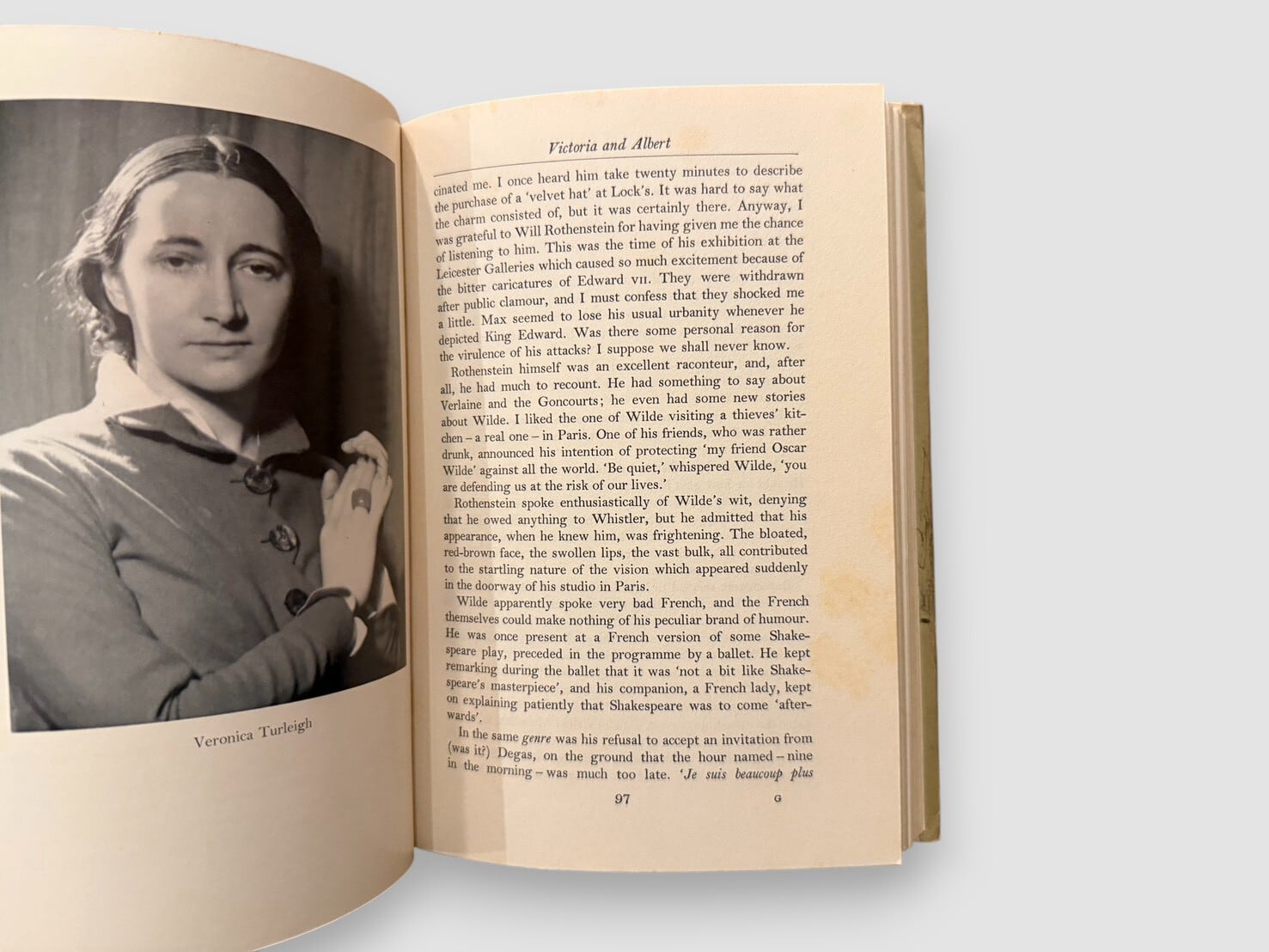 副題「The Education of an Iconographer(ある図像学者の形成)」が示す通り、ヴィクトリア&アルバート美術館での長年の勤務を軸に、美術・演劇・文芸界の人々との出会い、そして20世紀前半の芸術文化の空気を、知性とウィットに満ちた筆致で綴る。著者による献呈署名本。1964年に刊行されたアメリカ版初版。