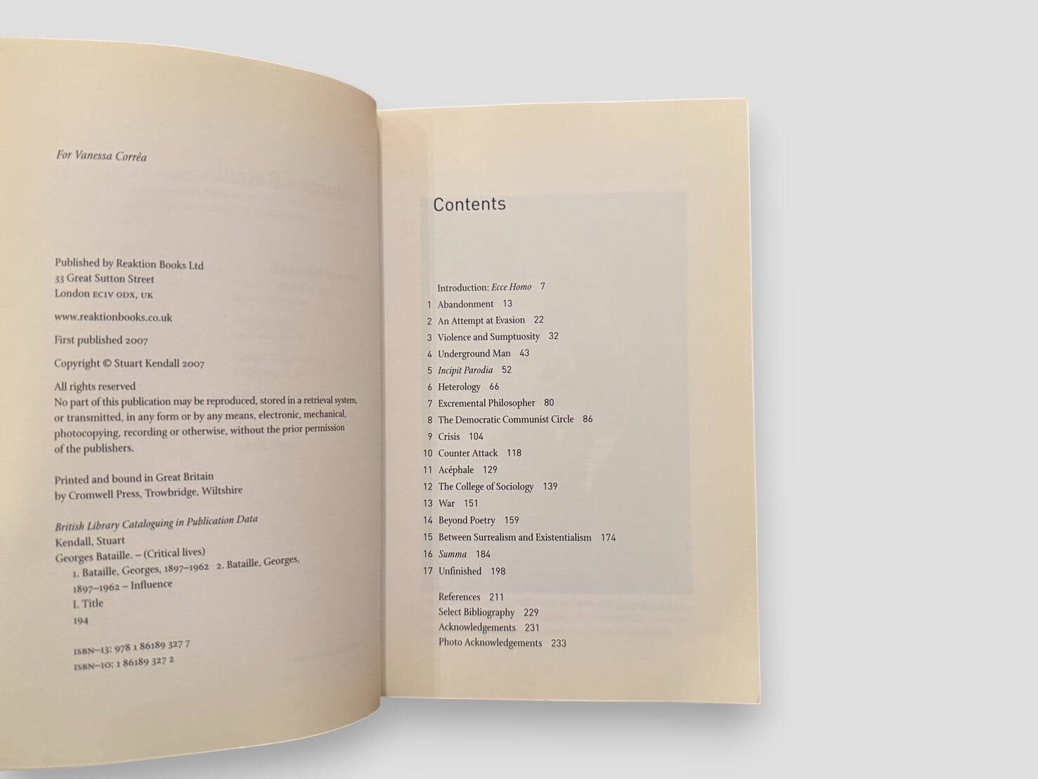 20世紀フランス思想の最も挑発的な思想家のひとり、ジョルジュ・バタイユ(1897–1962)をめぐる批評的伝記。『エロティシズム』『内的体験』『呪われた部分』などで知られるバタイユの生涯と思想を、宗教・哲学・文学の接点から読み解き、その文化的背景と影響を明らかにする。著者スチュアート・ケンダルは、バタイユが生涯をかけて探究した「聖性と禁忌」「死と歓び」といった主題を軸に、その思考のラディカルな核心に迫っている。Reaktion Booksの〈Critical Lives〉シリーズの一冊として、ニーチェ、ブランショ、サルトルらとの思想的対話の中に彼の位置を鮮やかに描き出した1冊。2007年刊行初版。