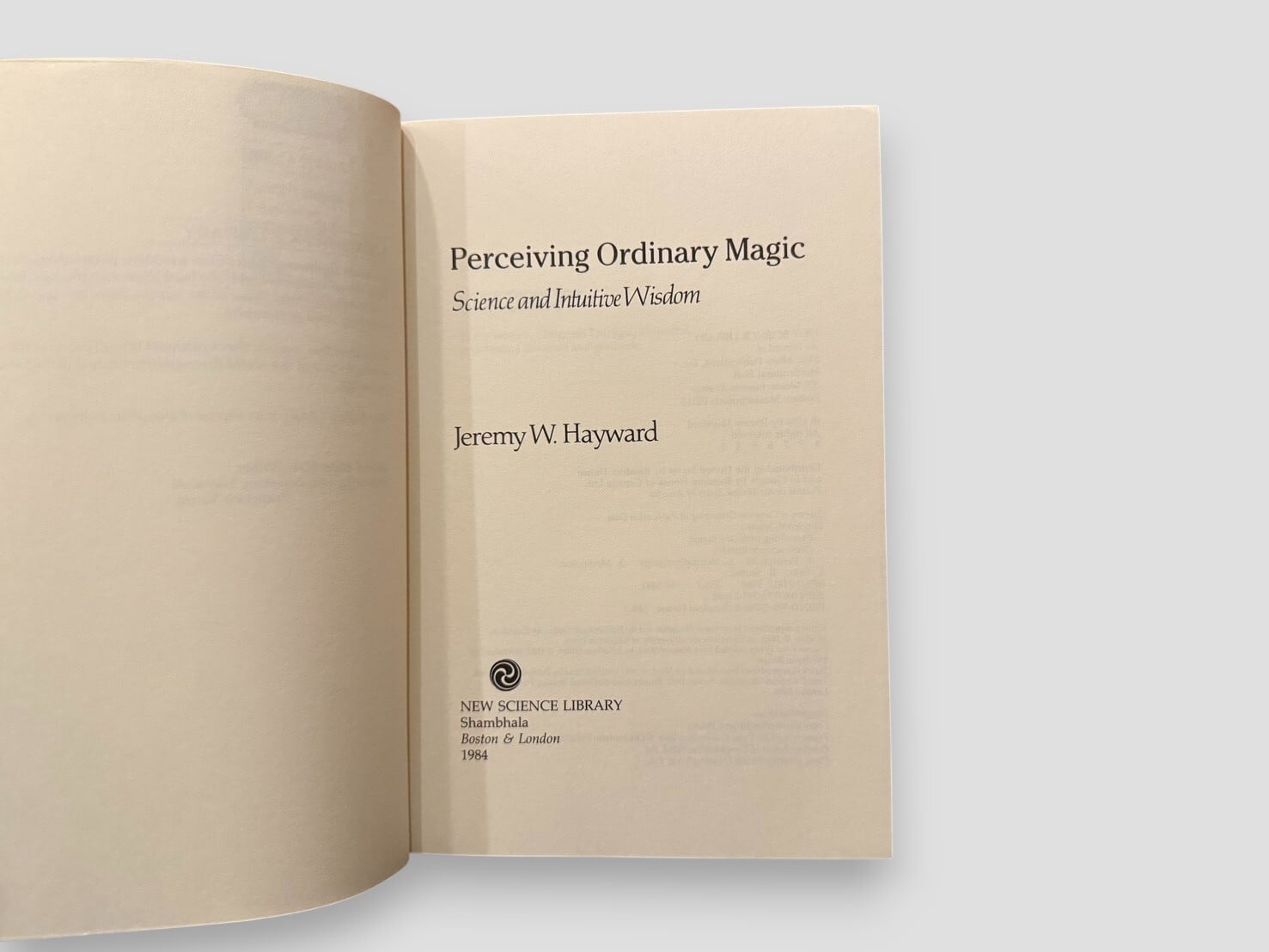 イギリスの物理学者であり、後にチベット仏教の思想に傾倒した哲学者ジェレミー・W・ヘイワード(1938–2020)による代表作。科学的認識と直観的叡智の接点を探る試みとして、物理学や進化論の洞察を仏教的瞑想の実践と対話させ、「現実をありのままに見る」という知覚の本質を探究する。シャーンバラ(Shambhala)哲学の中核をなす〈Warriorの道〉の教えを背景に、科学的思考の限界を超えて“普通の魔法=Ordinary Magic”を感じ取る感性の再発見を促す一冊。1980年代アメリカにおけるニューサイエンス運動を代表する思想的テキストのひとつである。