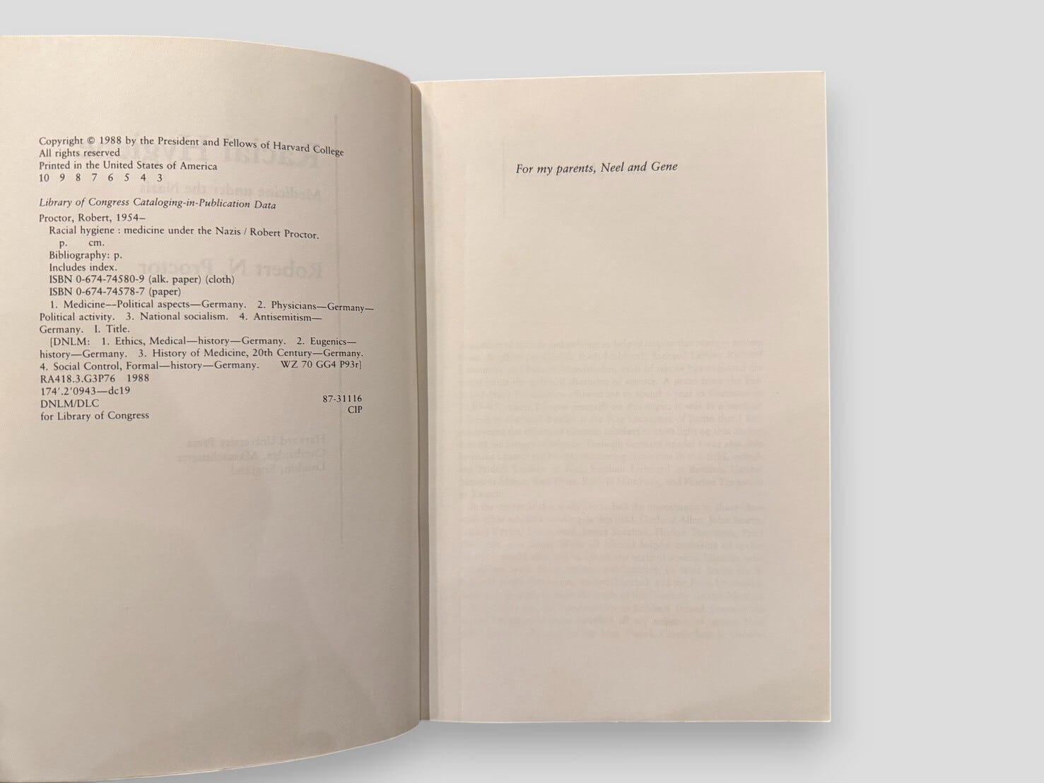 【SM010】【FIRST EDITION】Racial Hygiene: Medicine under the Nazis(1988) /Robert N. Proctor