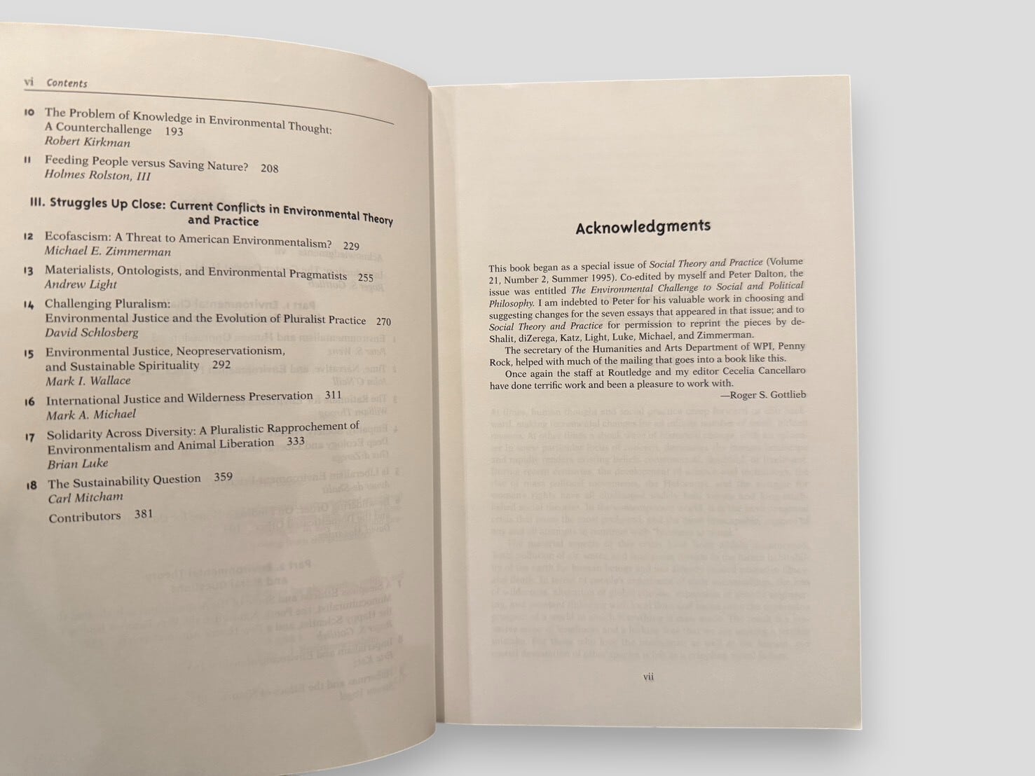 アメリカの思想家ロジャー・S・ゴットリーブが編纂した環境哲学の論集。「人間の倫理と環境」「社会正義と自然保護」「持続可能性とスピリチュアリティ」など、政治哲学・道徳哲学・宗教思想の視点からエコロジーを総合的に再考する重要なテキスト。マーク・マイケル、アンドリュー・ライト、カール・ミッチャムら環境思想の代表的論者が寄稿し、倫理学と生態学のあいだに横たわる「共生」の意味を問う。1997年刊行初版。